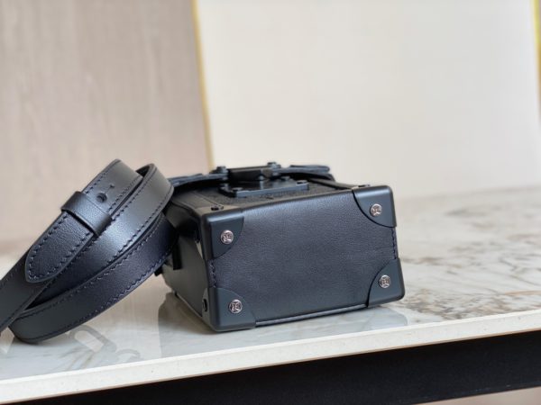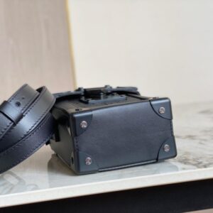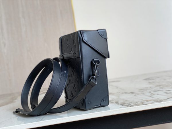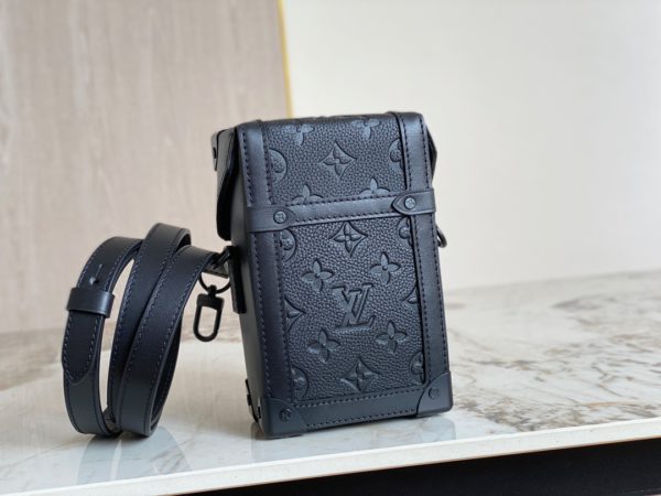 Black full leather men’s mobile phone bag series VERTICAL TRUNK mini handbag Vertical Trunk mini handbag adheres to the design concept rooted in the depths of Louis Vuitton, using Monogram Eclipse canvas to create a square configuration, with rivets and reinforcements The corners together highlight the brand’s traditional hard case elements. The magnetic flap secures storage, and the detachable and adjustable shoulder strap makes it easy to carry over the shoulder or across the body.
