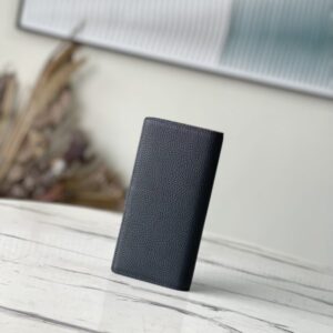 This LV Vertical Wallet is made of soft grained Taurillon leather with lettering for the sliding closure, inspired by the design of Capucines handbags. The pop-up contrast lining features a card slot, zipped coin pocket, and large V-shaped compartment for bills and receipts.