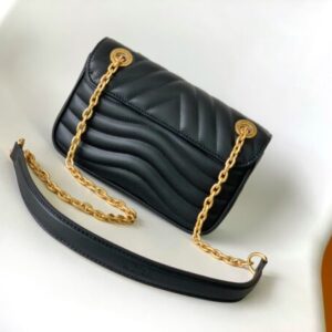 This New Wave small chain bag combines the Wave chain bag and the Multi Pochette Accessoires handbag. Padded quilted calfskin creates a wave shape, and the sliding chain shoulder strap allows long or short shoulder and cross-body options. Dimensions: 21 x 12 x 9 cm