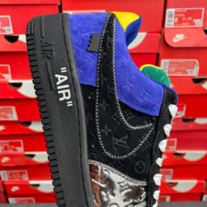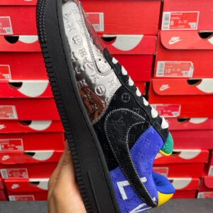 Original Box Version with Accessories Louis Vuitton x Nike Air Force 1 Low Black/Silver Colorway Mixed-Color Low-Top Cowhide Leather Casual Shoes Sneakers Skate Shoes Men’s Shoes Women’s Shoes 1A9VCH