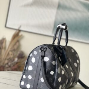 YK Keepall 45 travel bags are from the x Yayoi Kusama cooperation series. The polka dot pattern is depicted on the Monogram Eclipse canvas, praising the fusion of artistic creativity and exquisite craftsmanship, and once again becoming a good collection. Japanese artist Yayoi Kusama’s fascination with polka dots began in childhood, and she runs through her personal works as a concrete expression of disorder.
