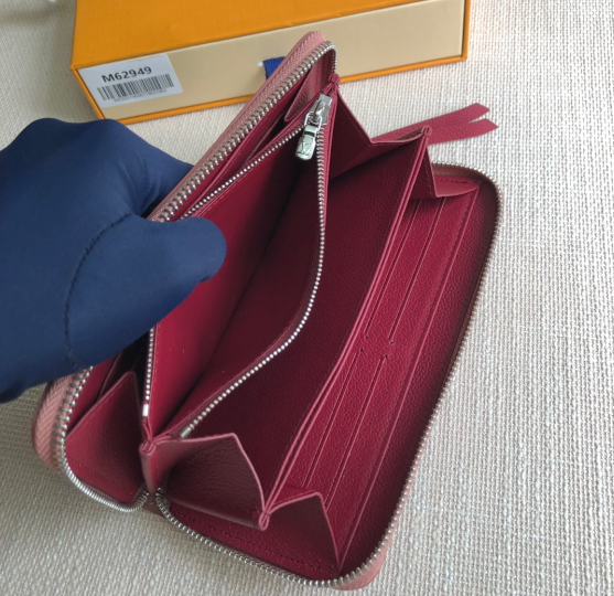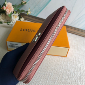 The Zippy Lockme wallet, crafted from soft calfskin, combines the signature design of a zipper wallet with the signature elements of the fashion line: the LV letter charm and the front pocket for easy access to items such as tickets. The reliable wraparound zip features multiple interior pockets and compartments.