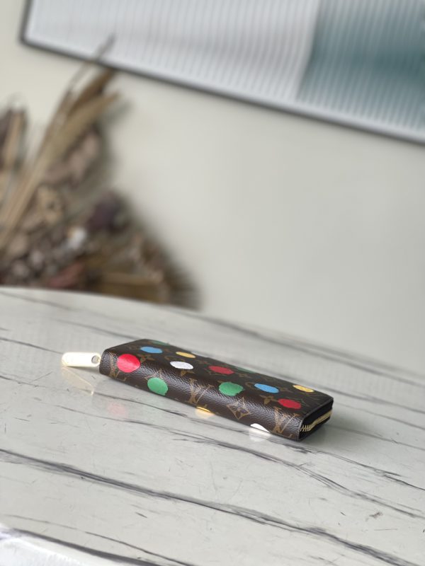 ZIPPY zipper wallet Polka dot master Yayoi Kusama cooperation series Zippy zipper wallet pays tribute to Louis Vuitton’s tradition of travel and making suitcases, the wallet is decorated with travel-style patches and logos. With its compact interior and clean design, this wallet is ideal for everyday use.