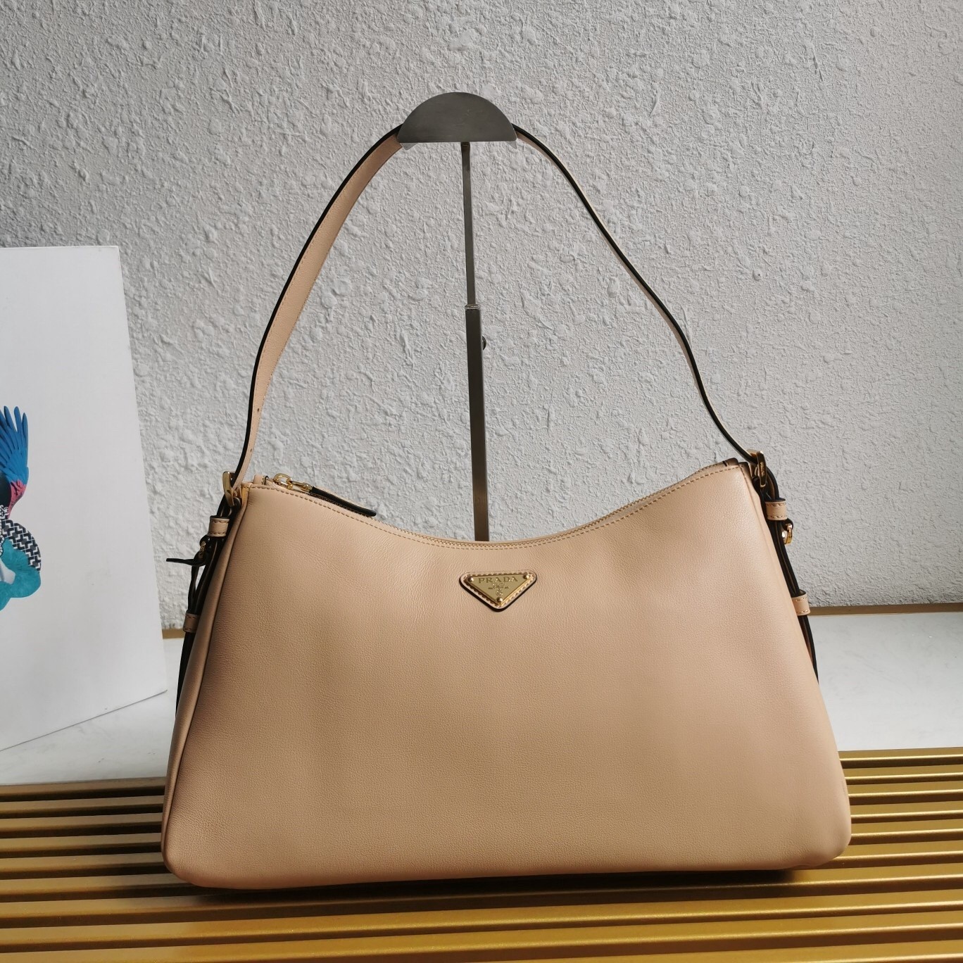 Prada Aimee Large Shoulder Bag in Travertine Leather