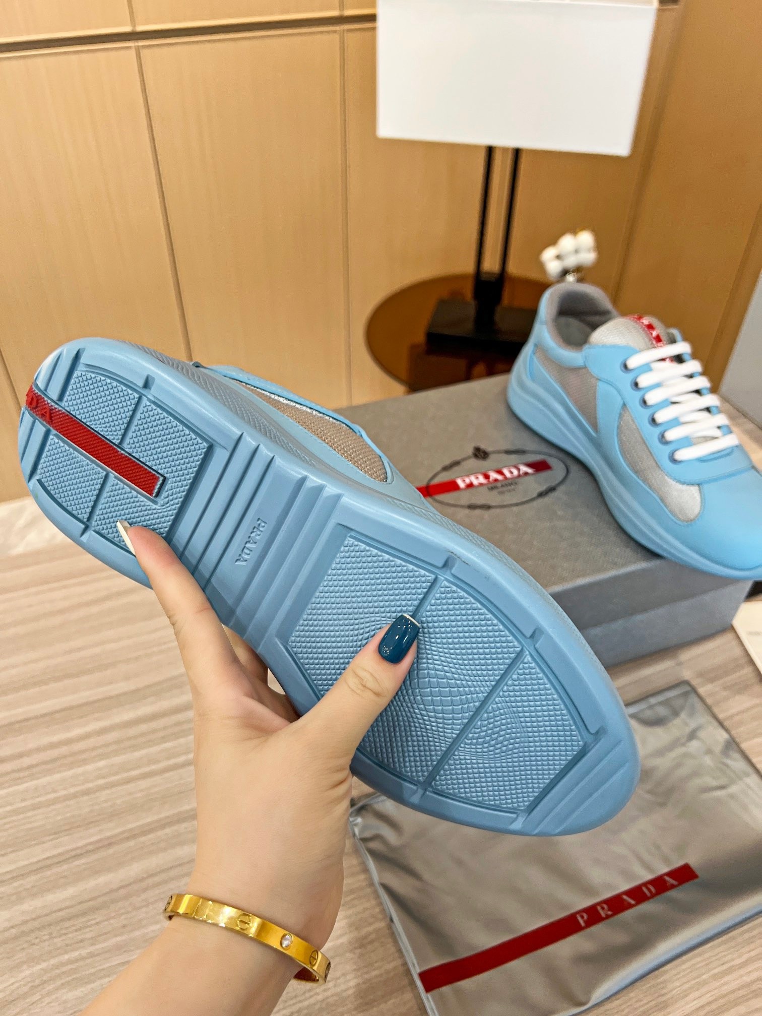 – Prada Linea Rossa latex logo badge