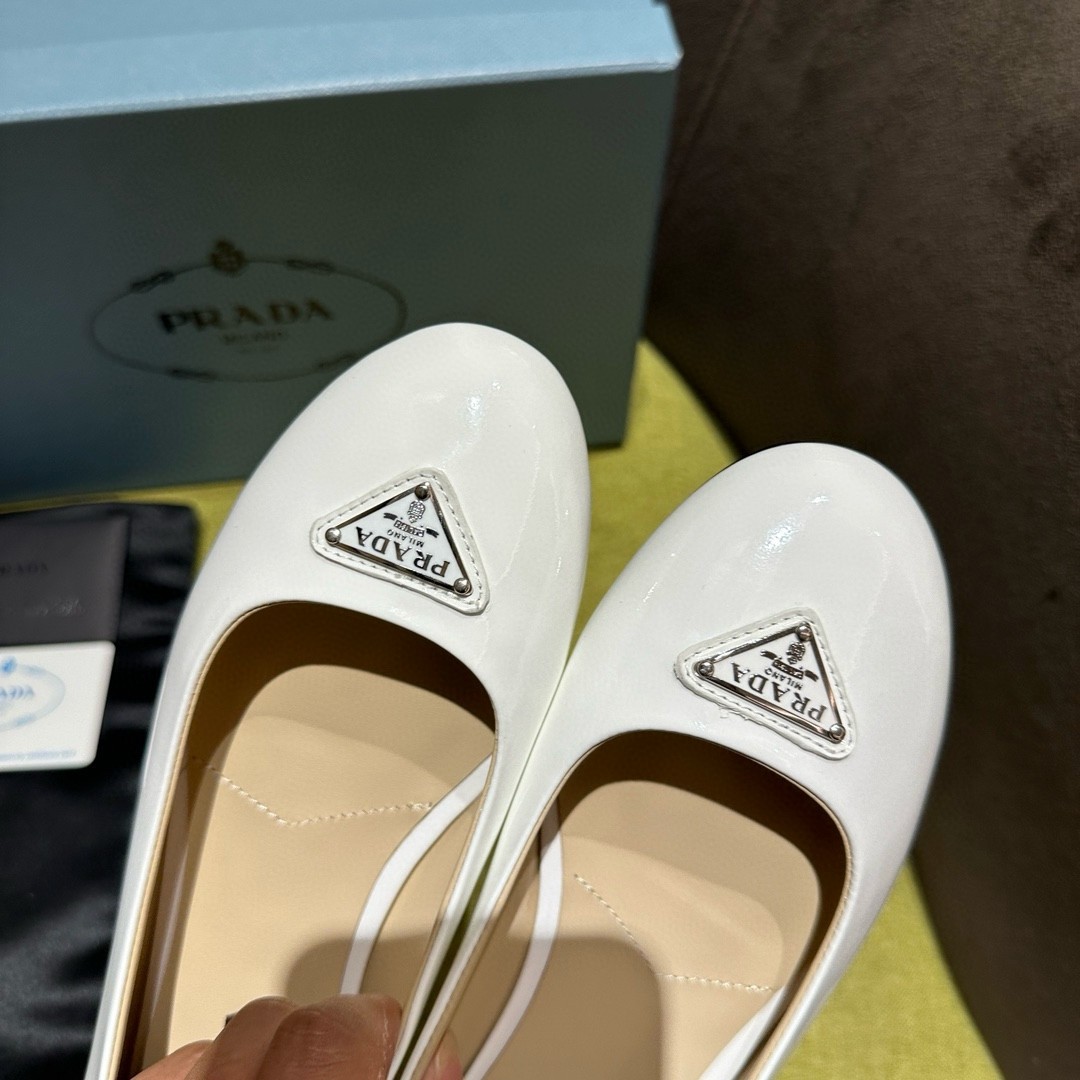 Prada Ballerinas in White Patent Leather