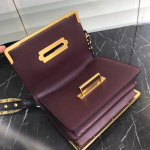 Prada Cahier Shoulder Bag In Bordeaux/Black Leather