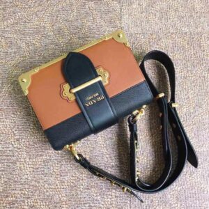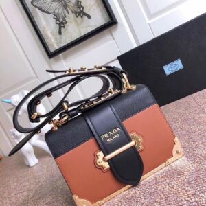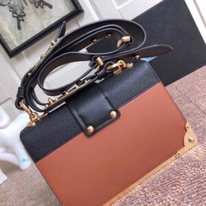 Prada Cahier Shoulder Bag In Brown/Black Leather