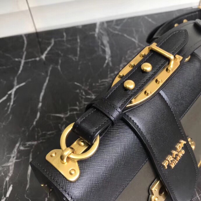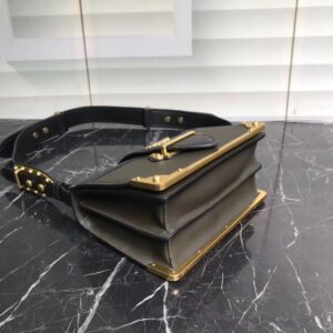 Prada Cahier Shoulder Bag In Green/Black Leather