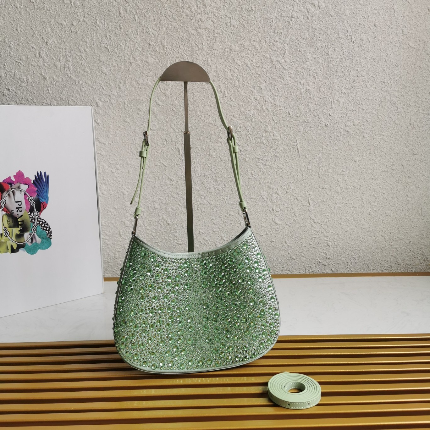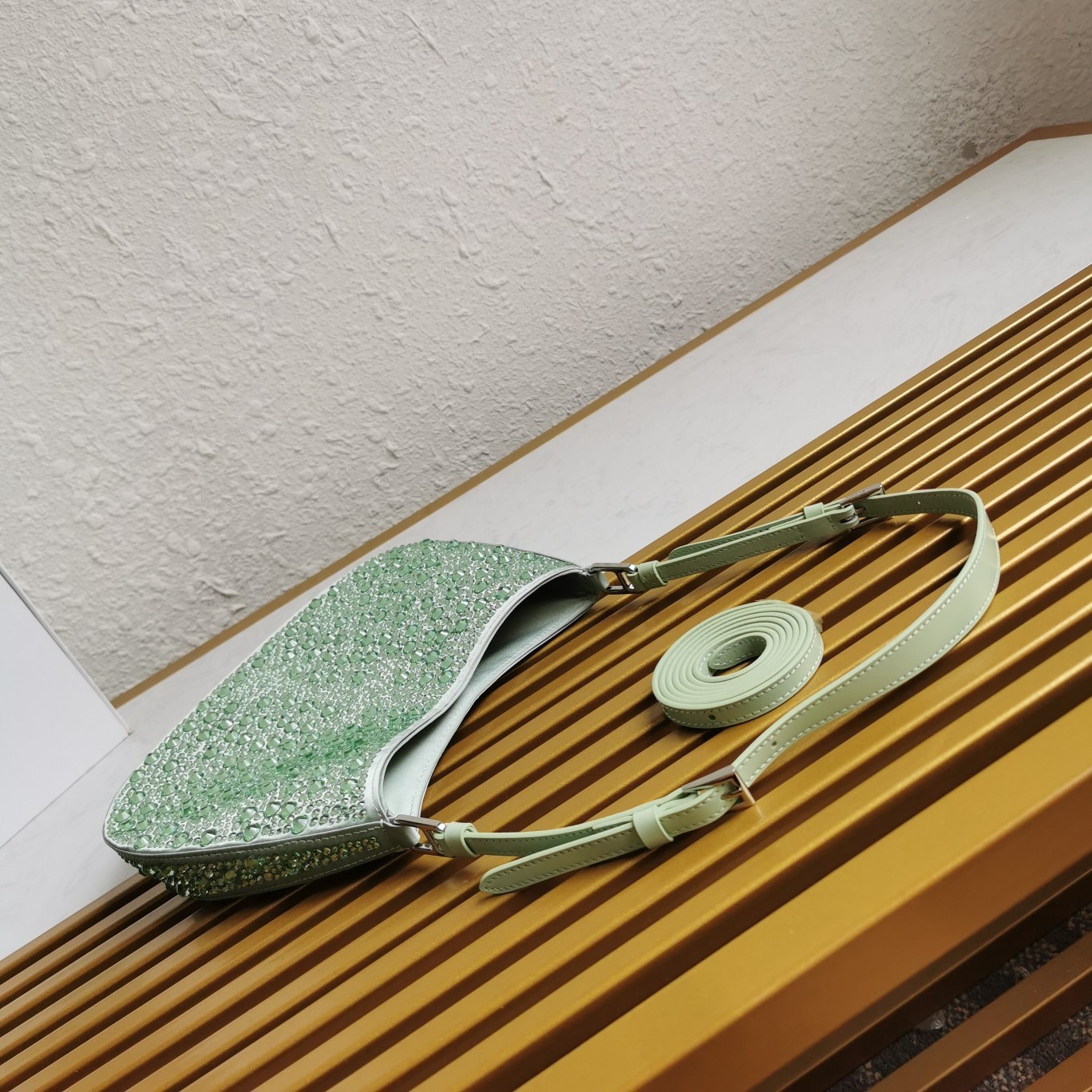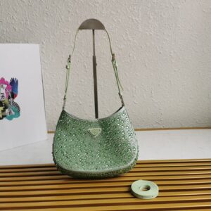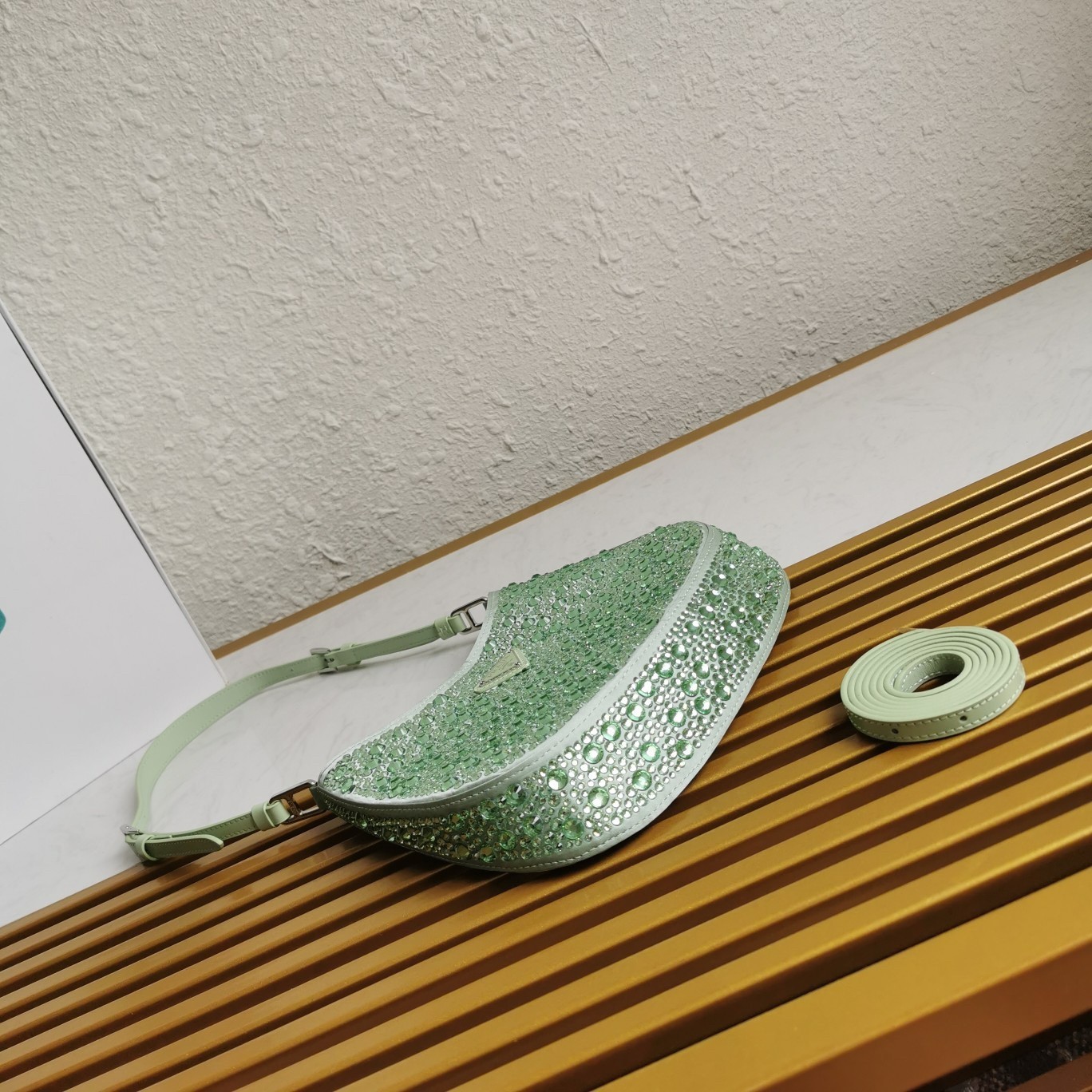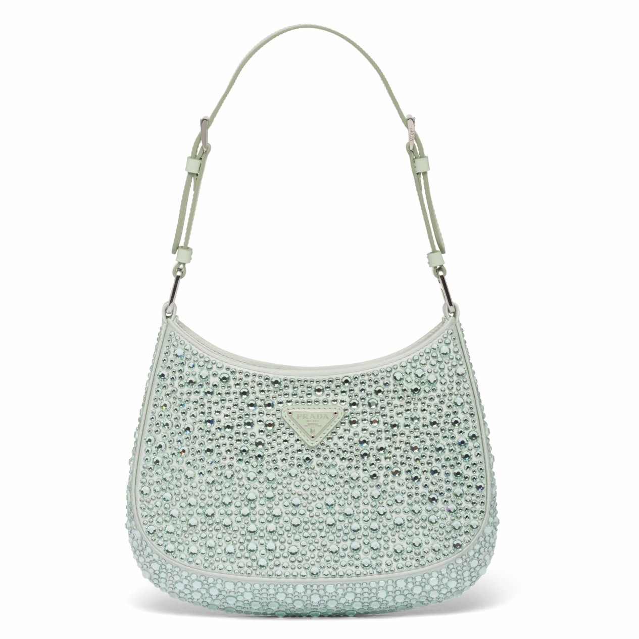 Prada Cleo Bag In Aqua Satin with Cystal Appliques