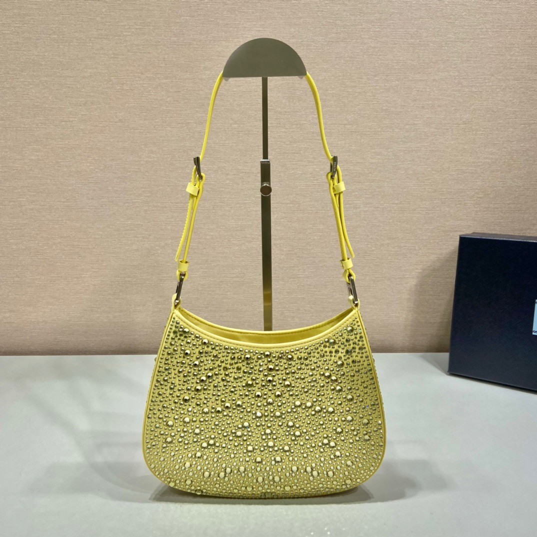 Prada Cleo Bag In Yellow Satin with Cystal Appliques