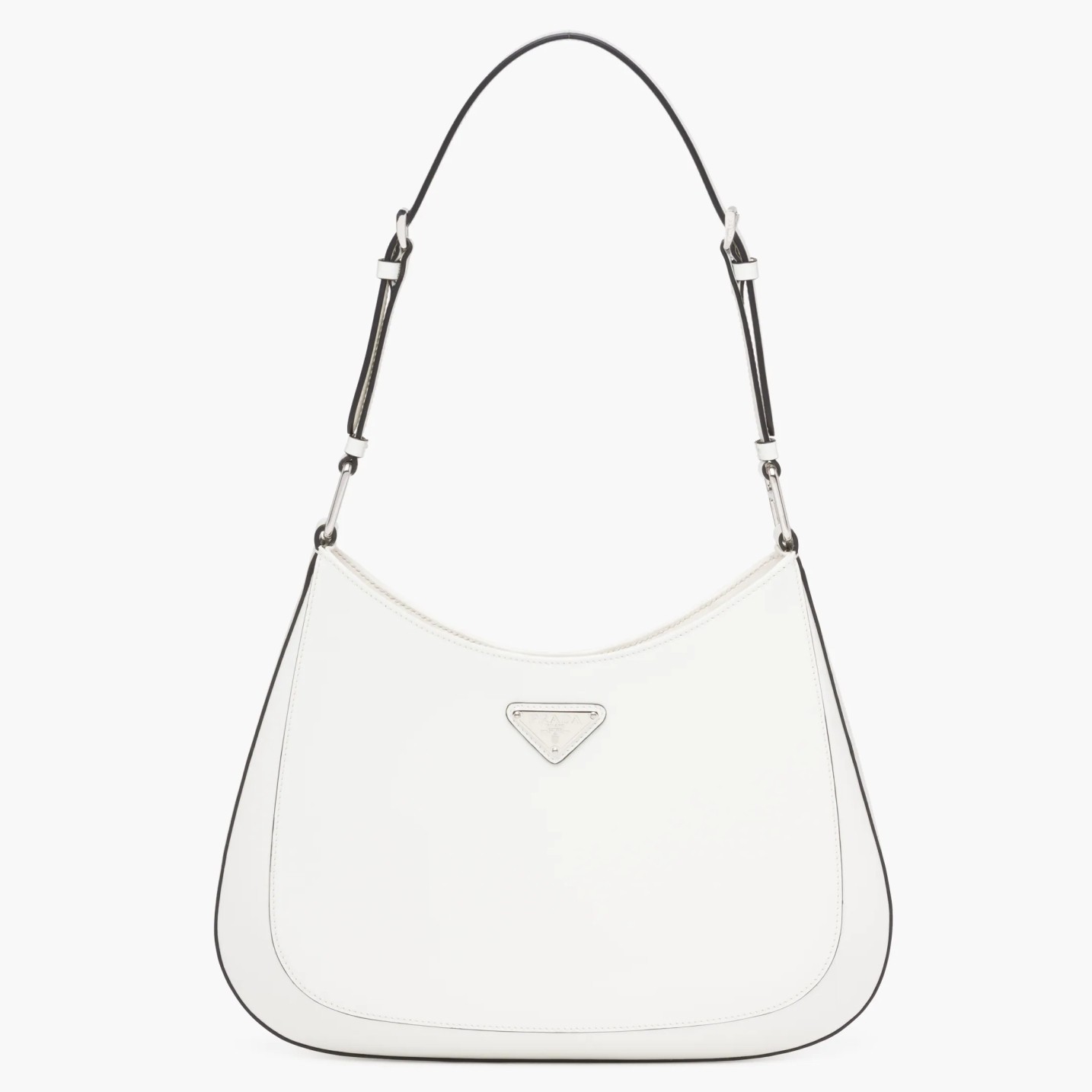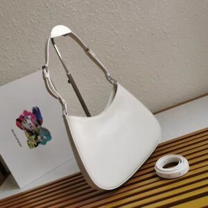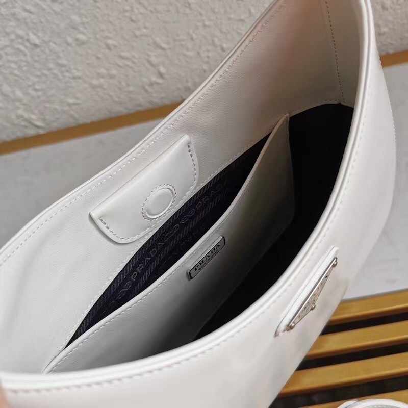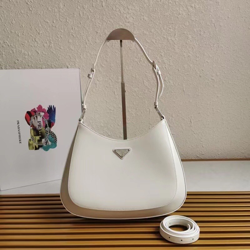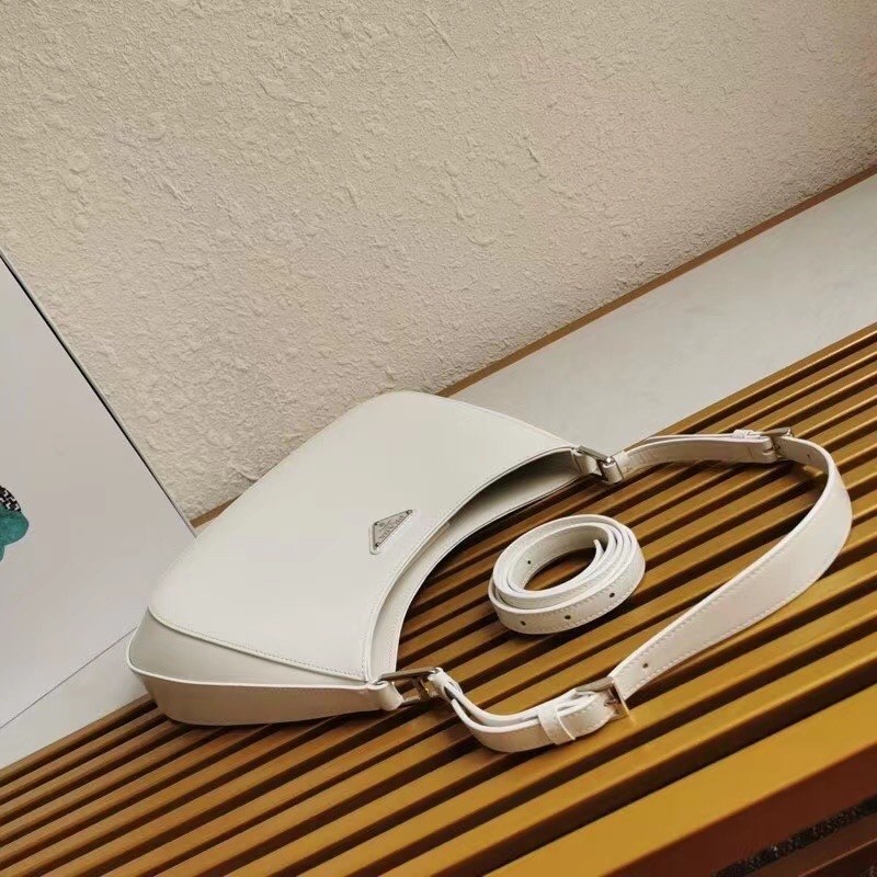 Prada Cleo Large Shoulder Bag In White Brushed Leather