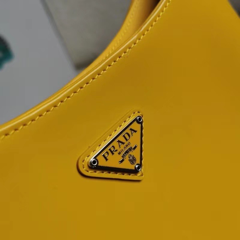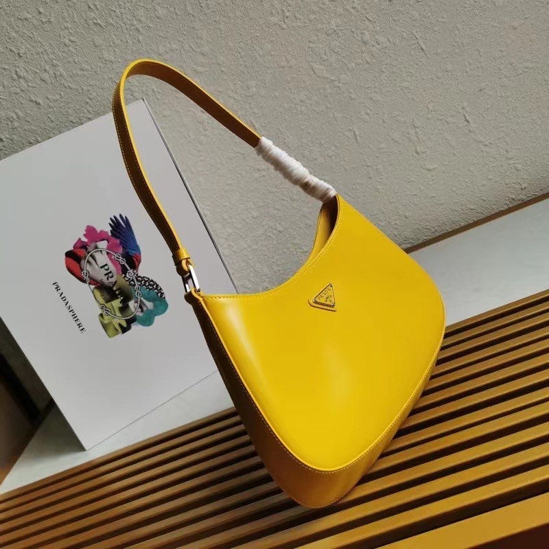 Prada Cleo Shoulder Small Bag In Yellow Brushed Leather