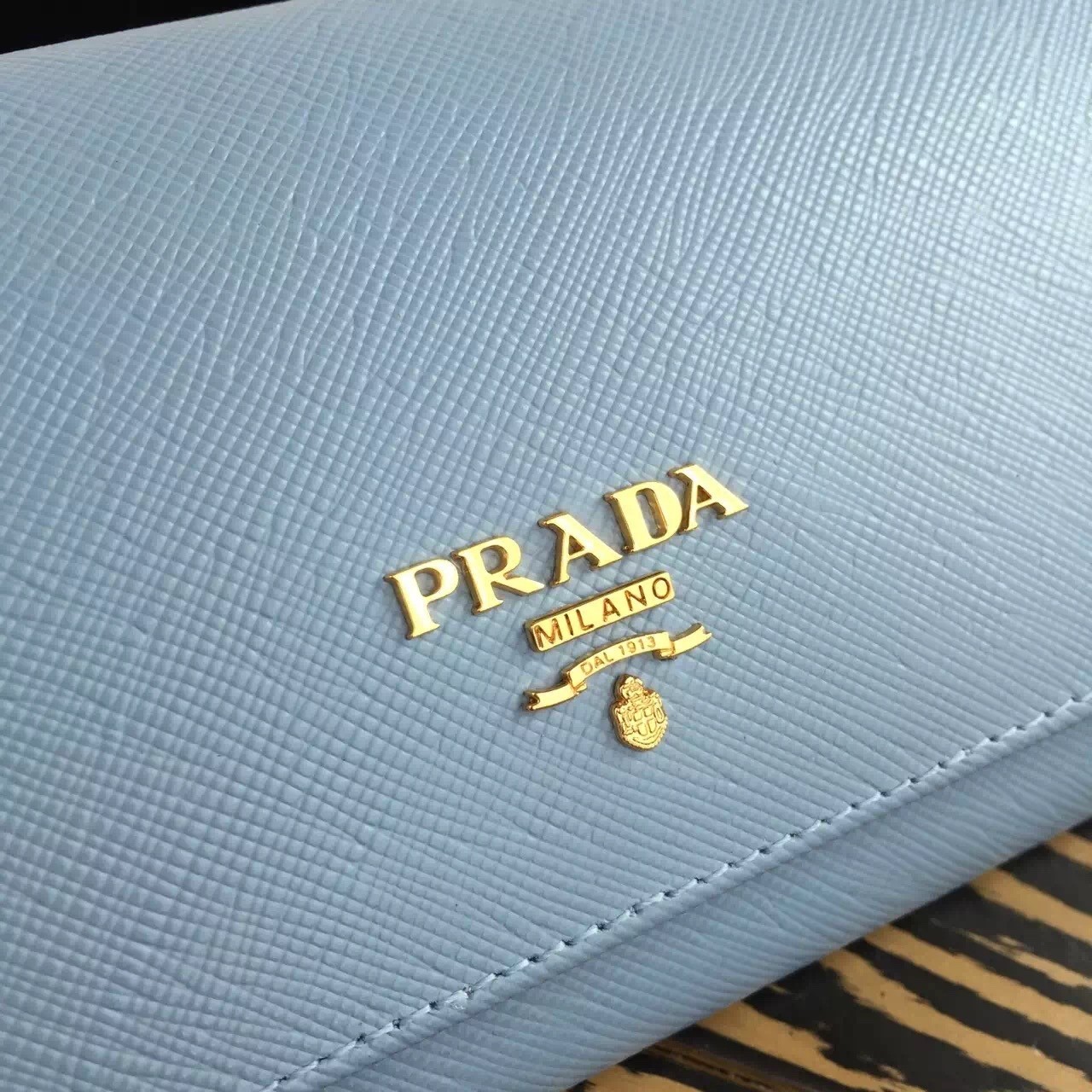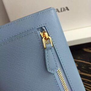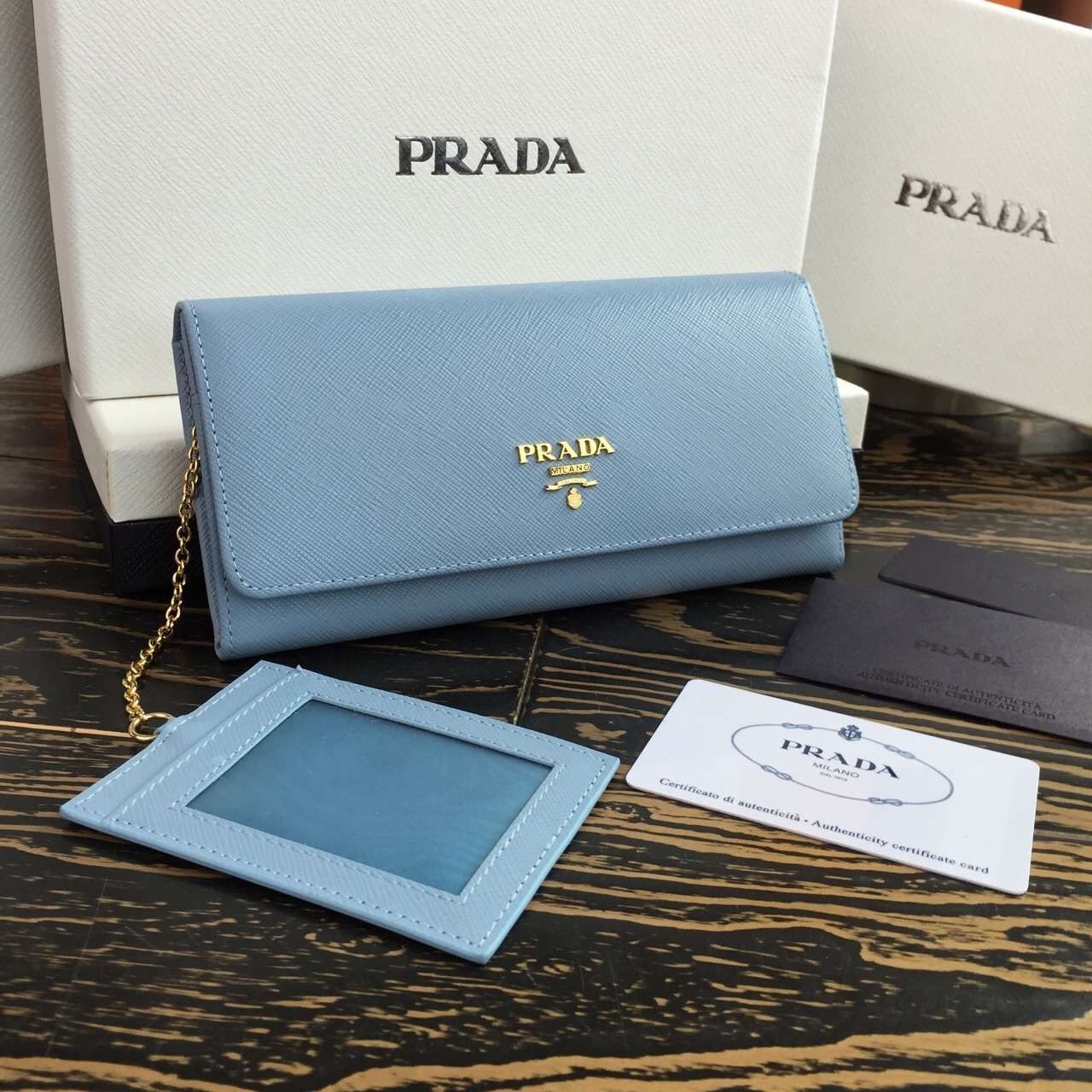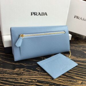 Prada Continental Wallet In Light Blue Saffiano Leather