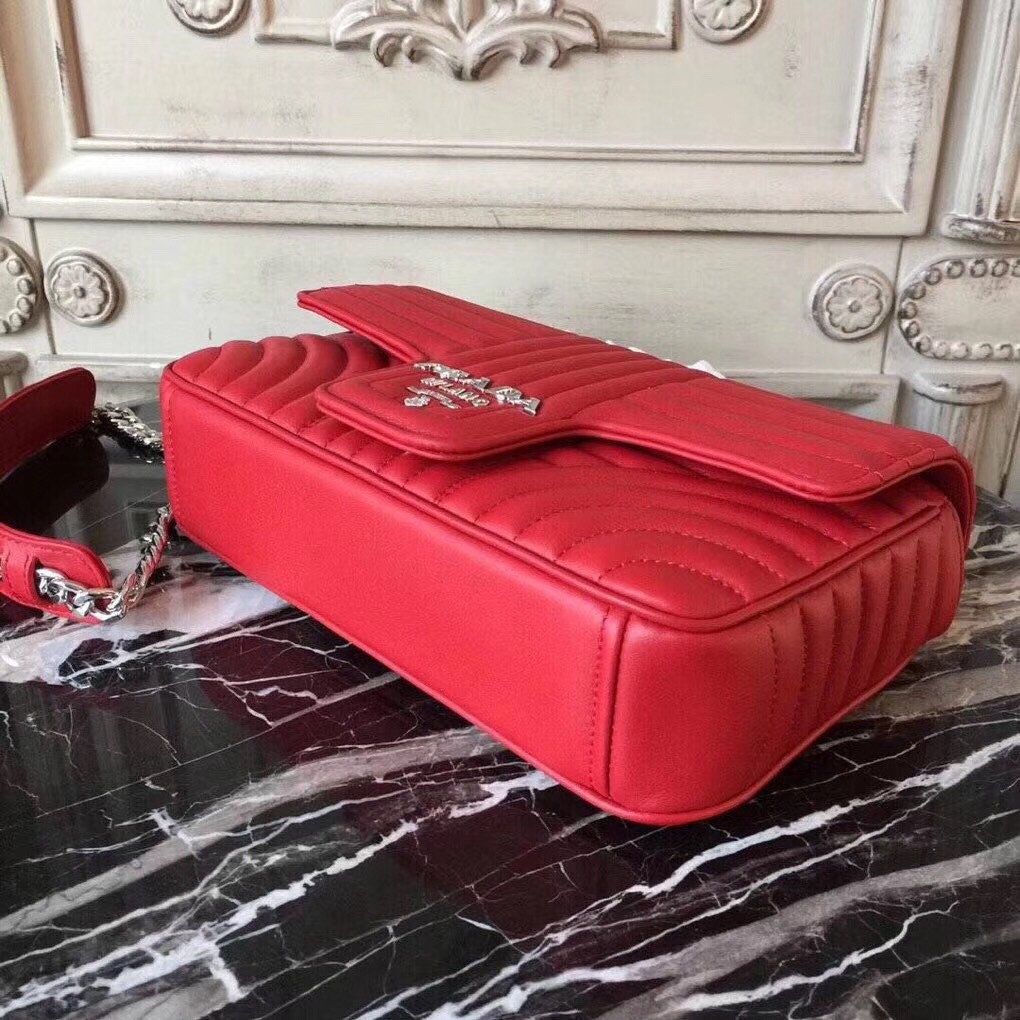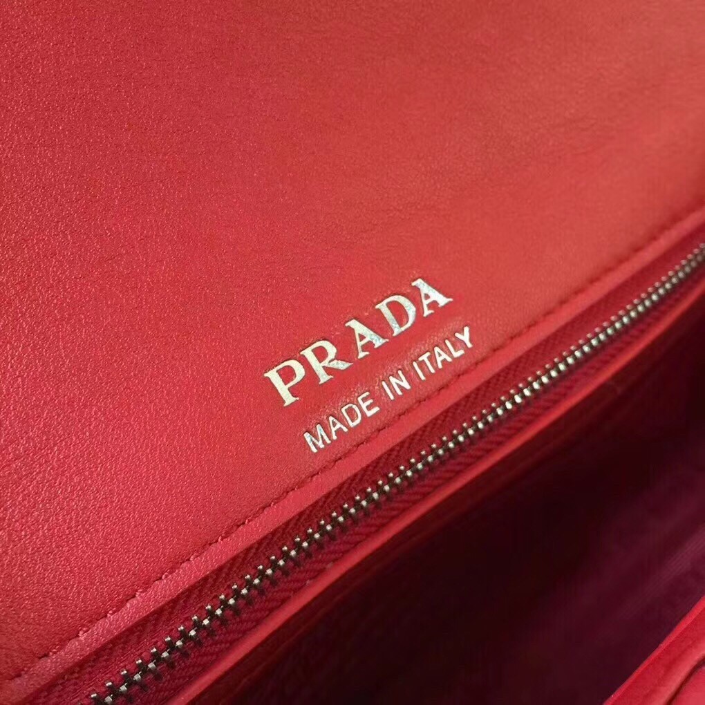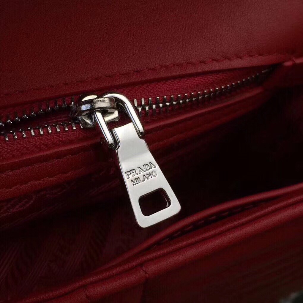Prada Diagramme Flap Bag In Red Calfskin