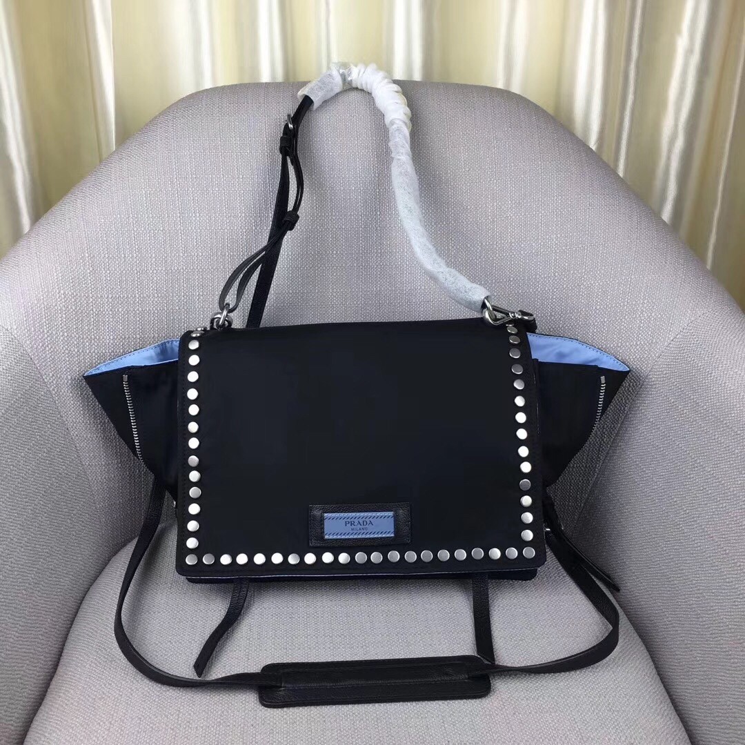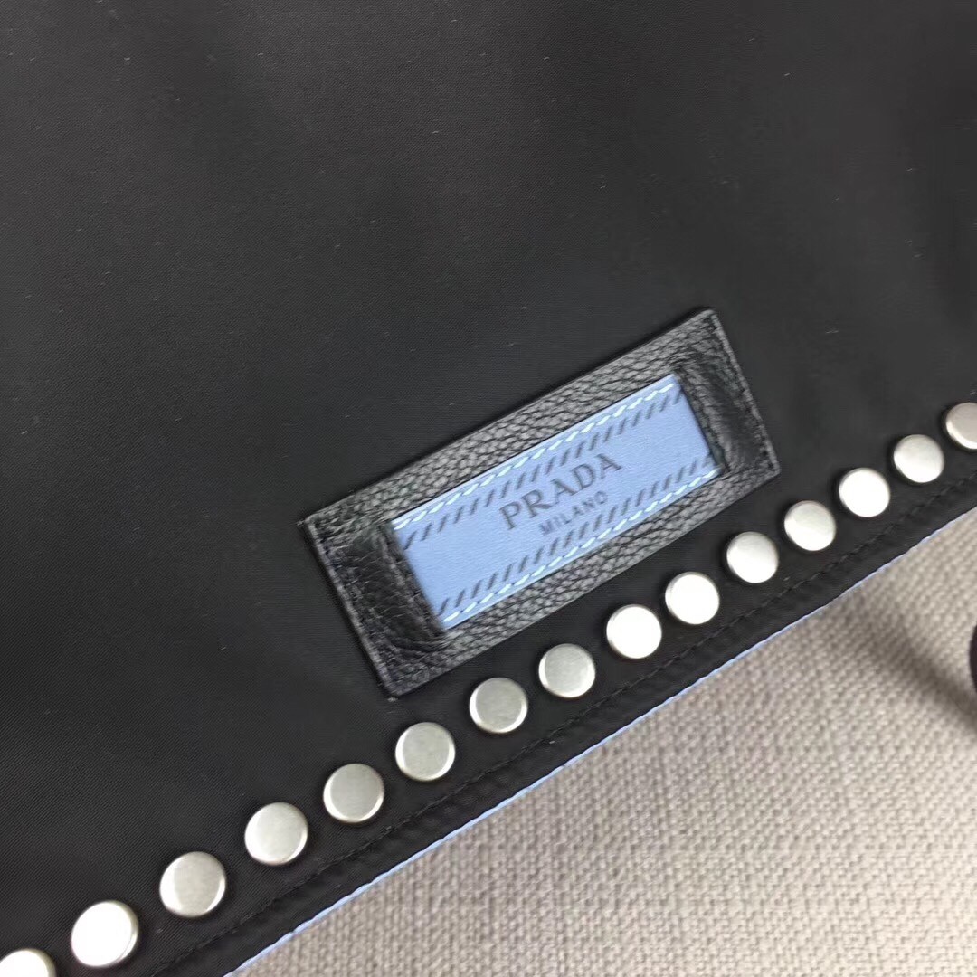 Prada Etiquette Bag In Nylon With Metal Stud Trim