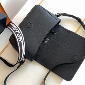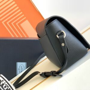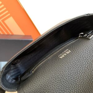 Prada Flap Shoulder Bag in Black Grained Leather