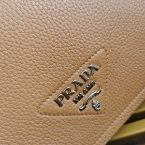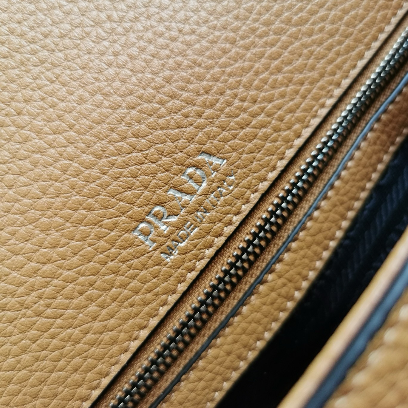 Prada Flap Shoulder Bag in Brown Grained Leather