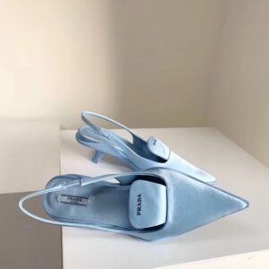 Prada Gabardine Slingback Pumps In Light Blue Nylon