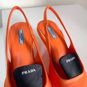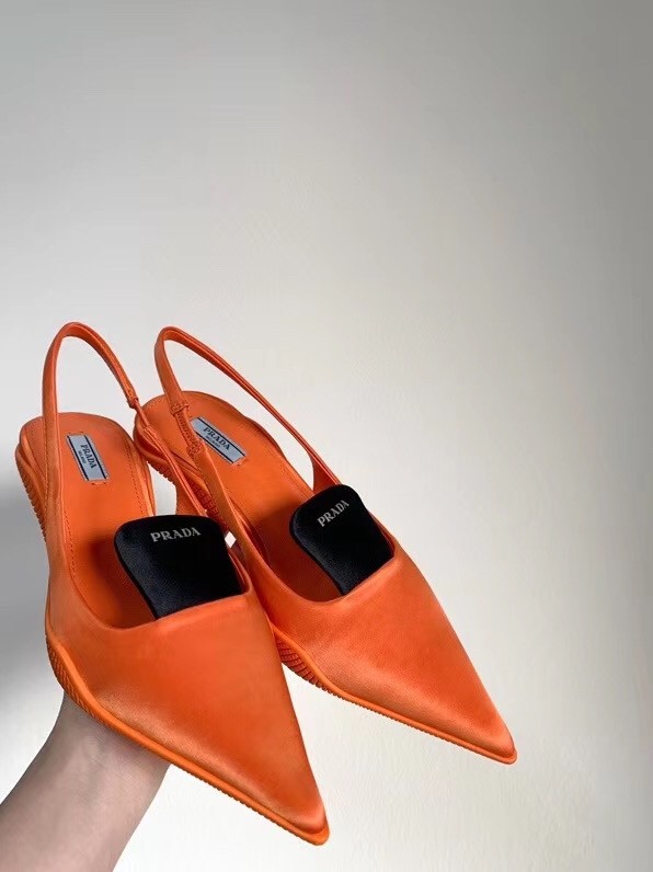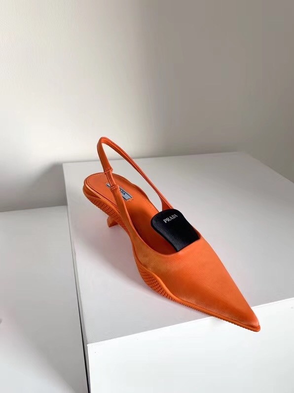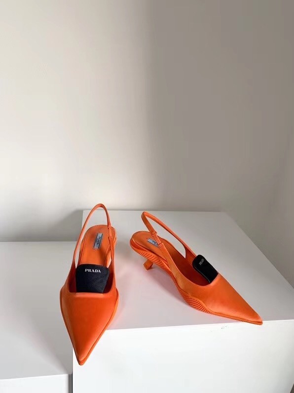 Prada Gabardine Slingback Pumps In Orange Nylon