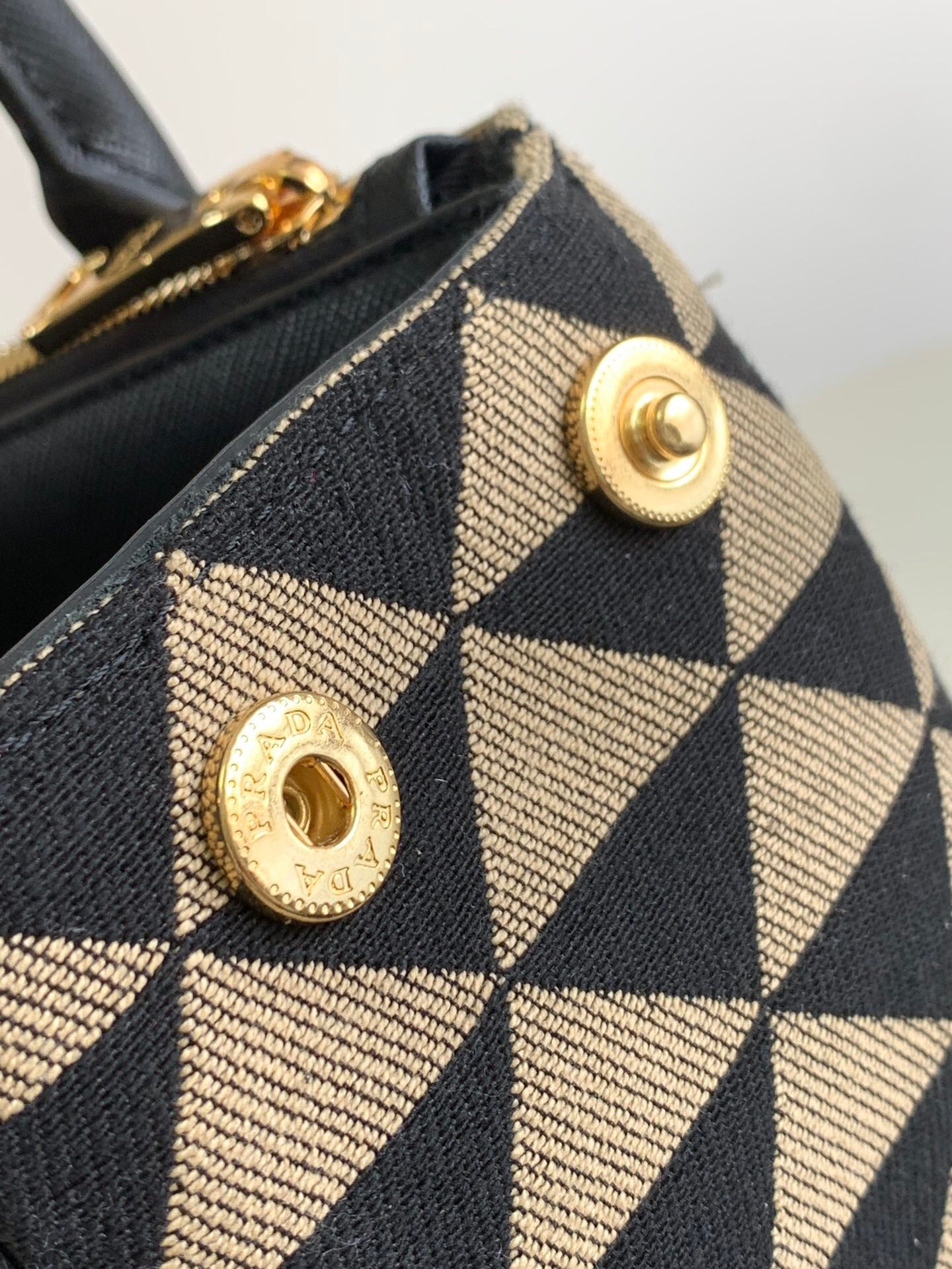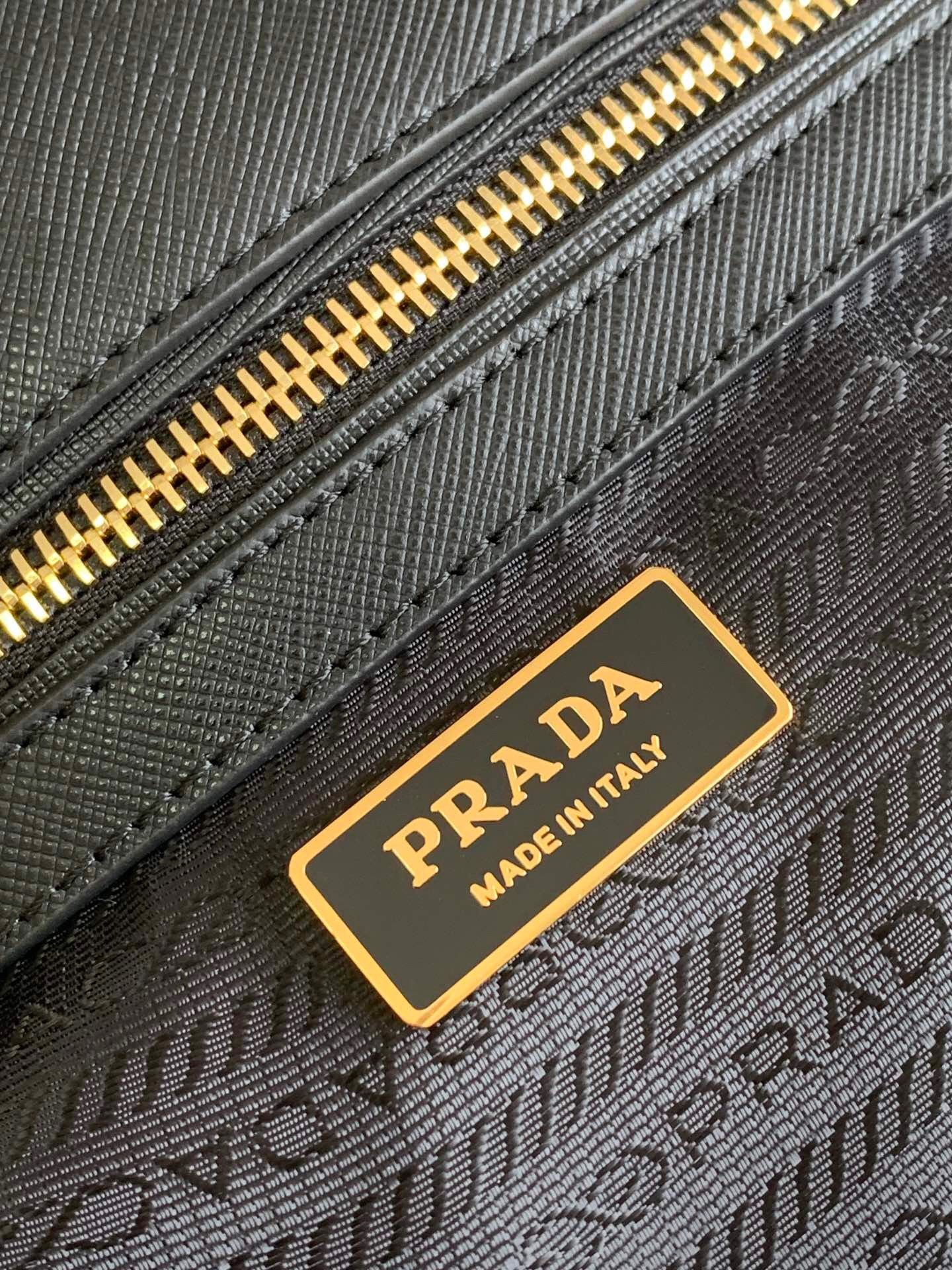 – Prada logo-print nylon lining with two pockets, one with zipper