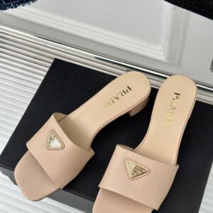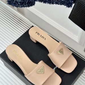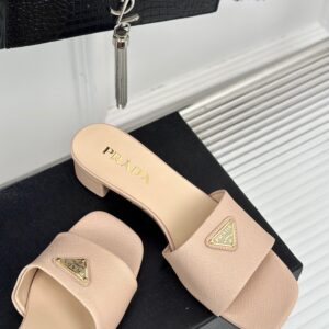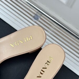Prada Heeled Sandals 35mm in Beige Saffiano Leather