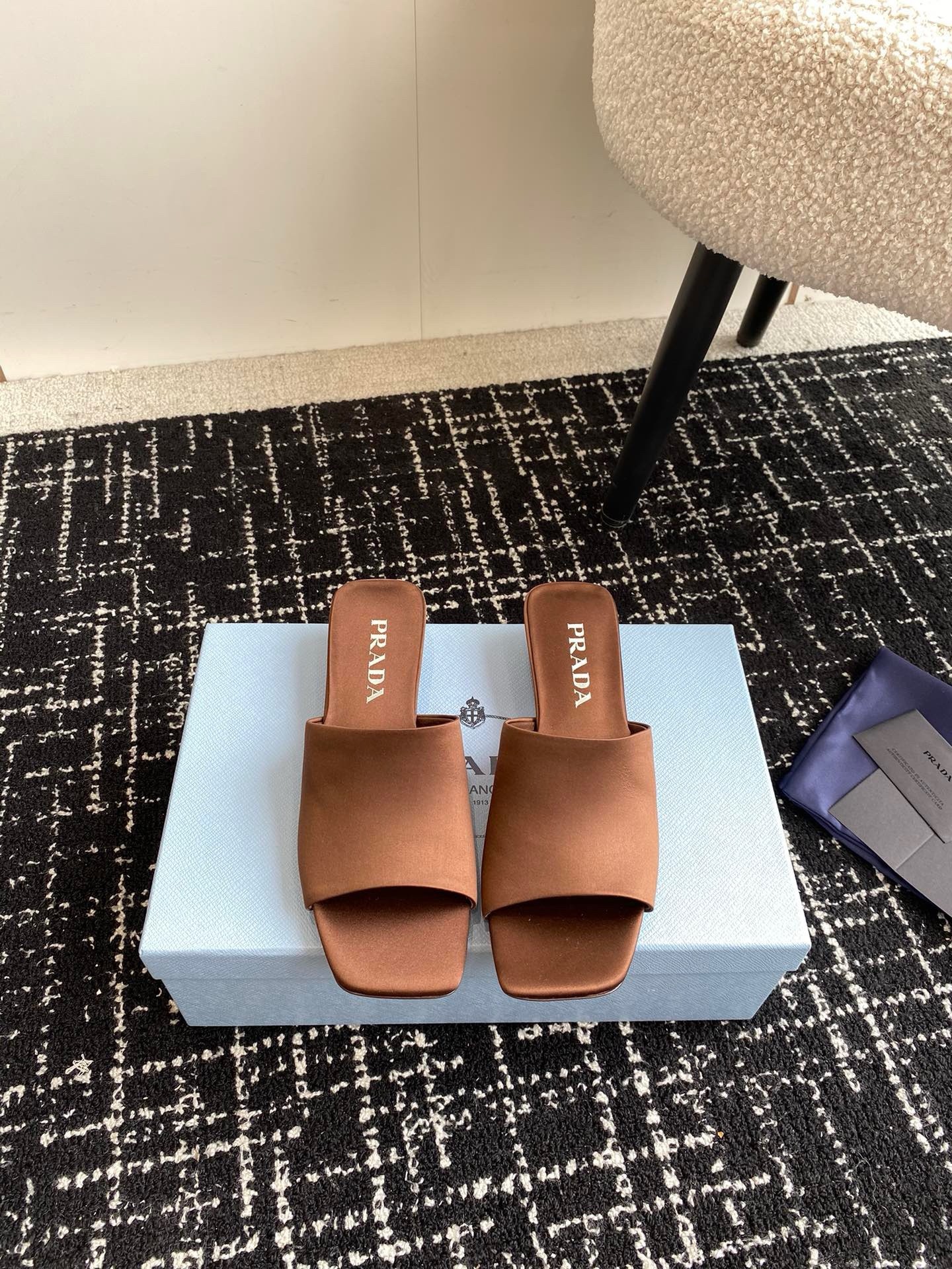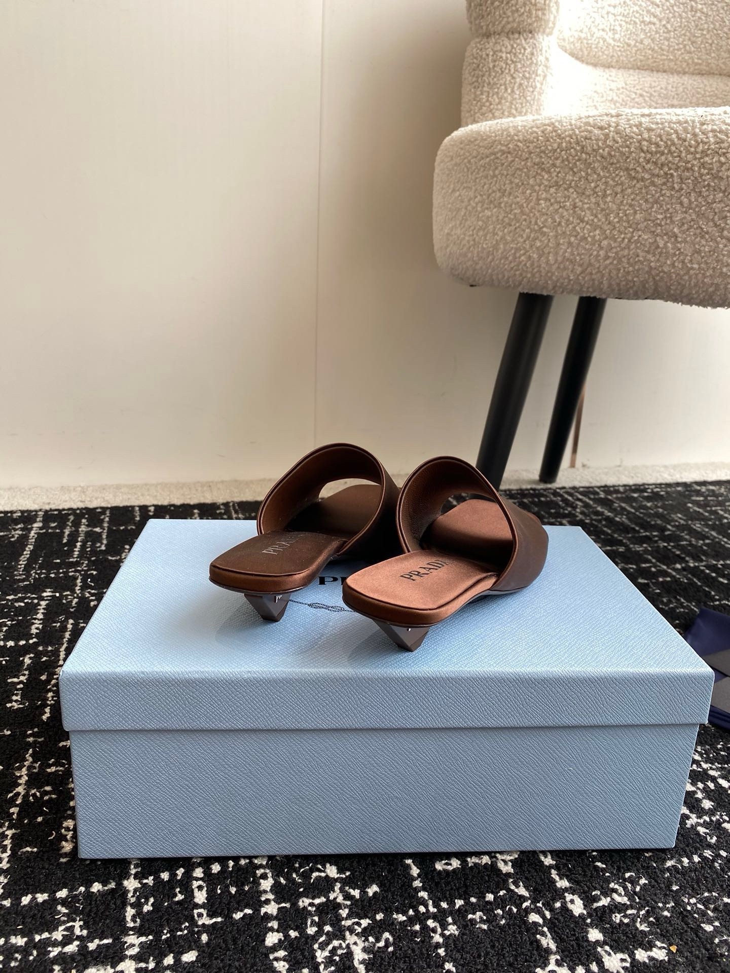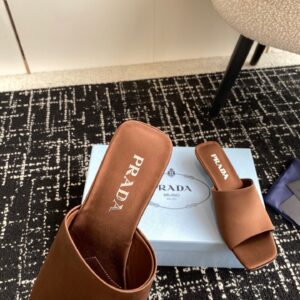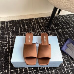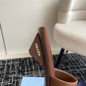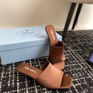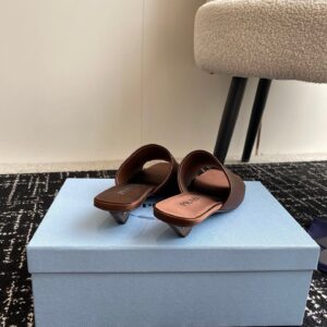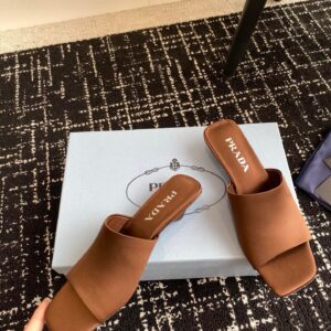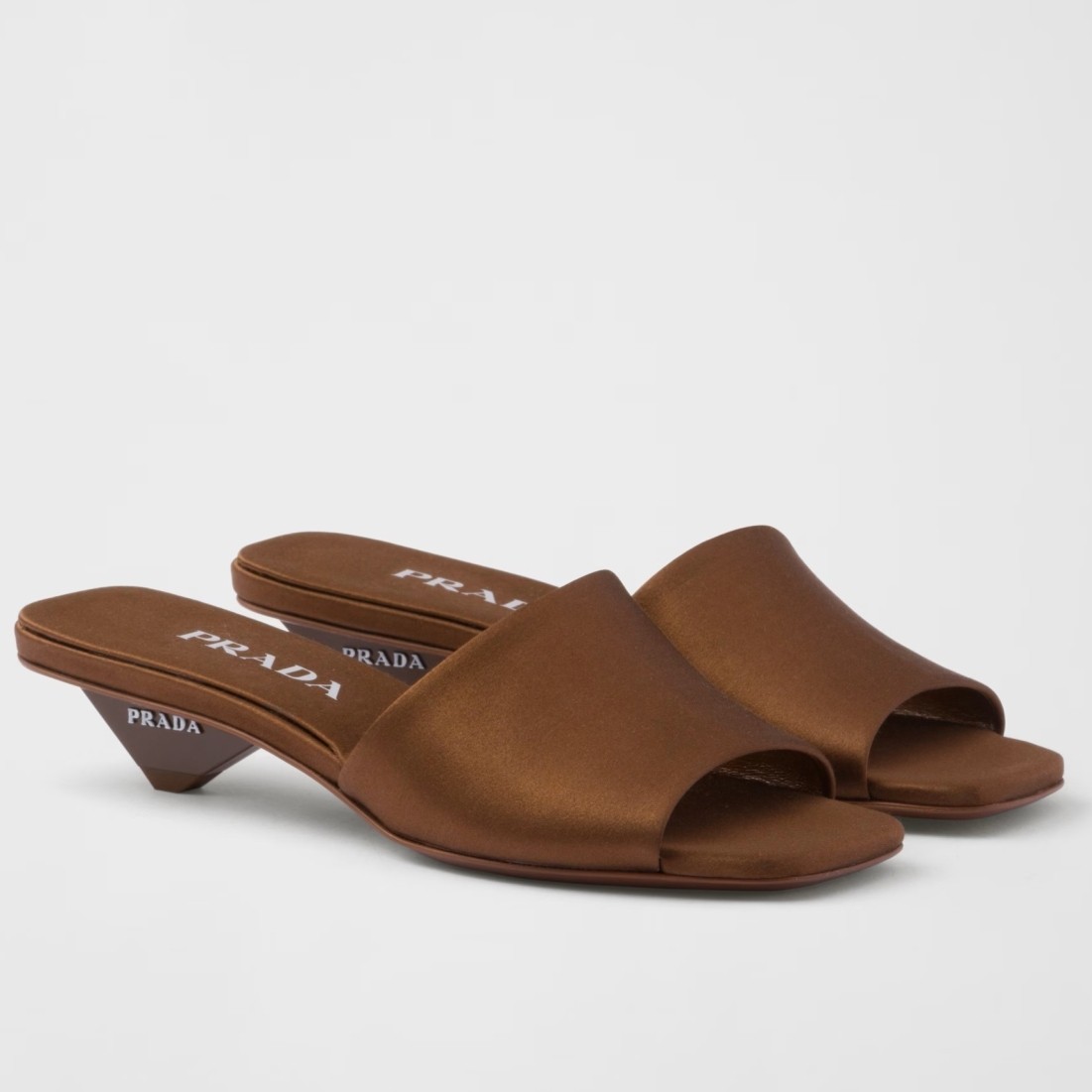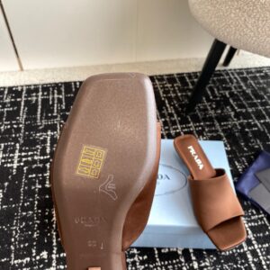 Prada Heeled Slides 35mm in Tobacco Satin