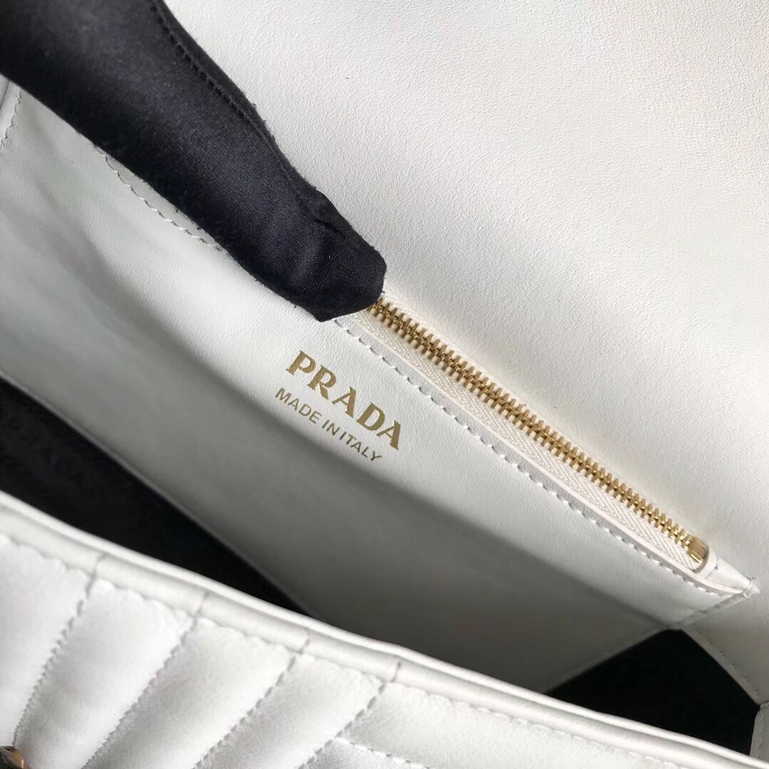Prada Medium Diagramme Flap Bag In White Calfskin