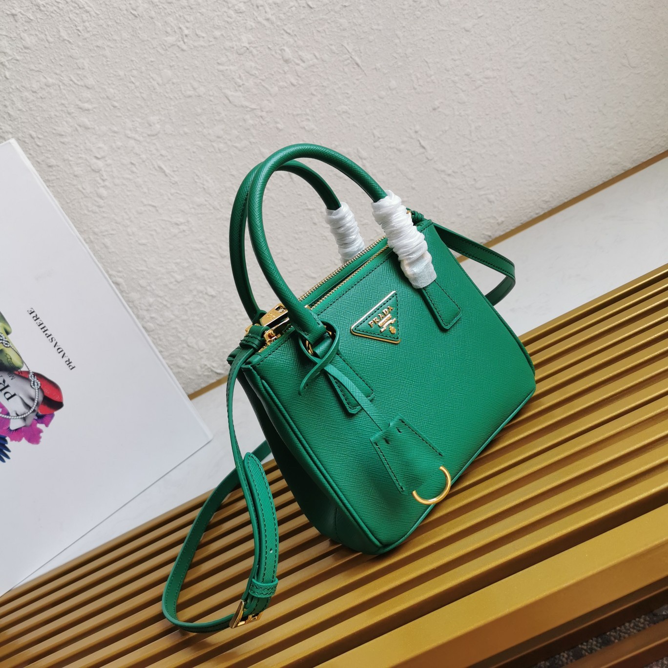 Prada Mini Galleria Bag In Green Saffiano Leather