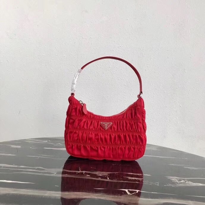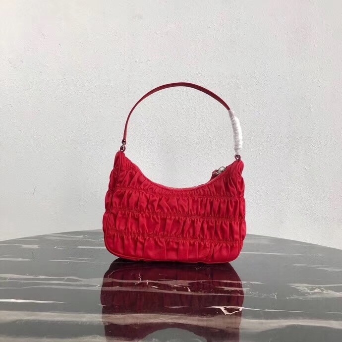 Prada Mini Hobo Bag In Red Nylon and Leather