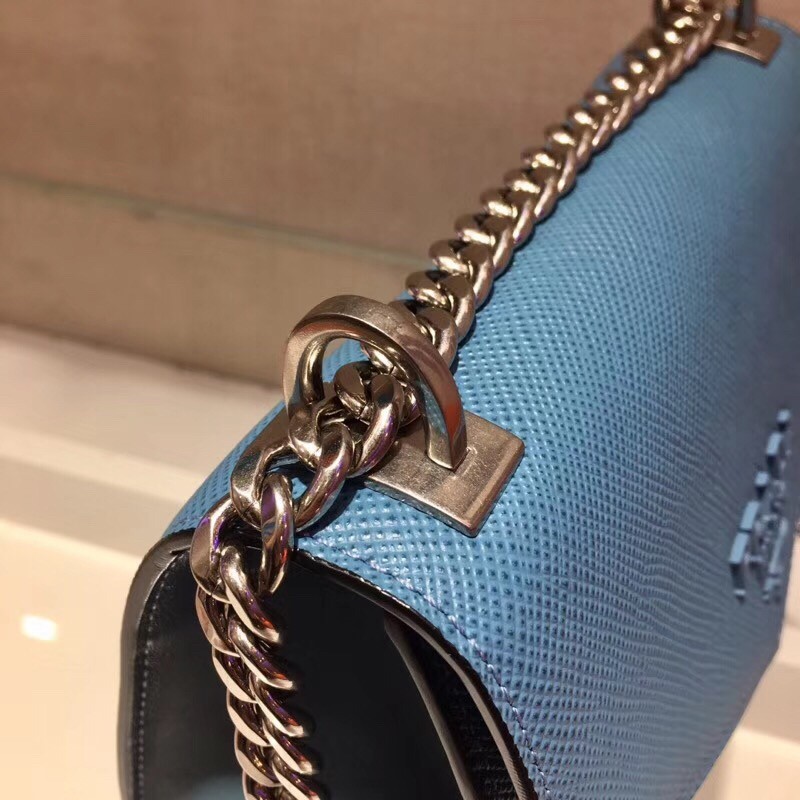 Prada Monochrome Flap Bag In Blue Saffiano Leather