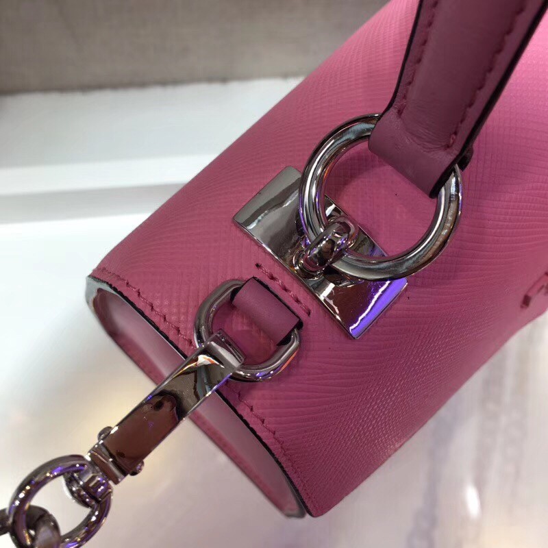 Prada Monochrome Top Handle Bag In Pink Saffiano Leather