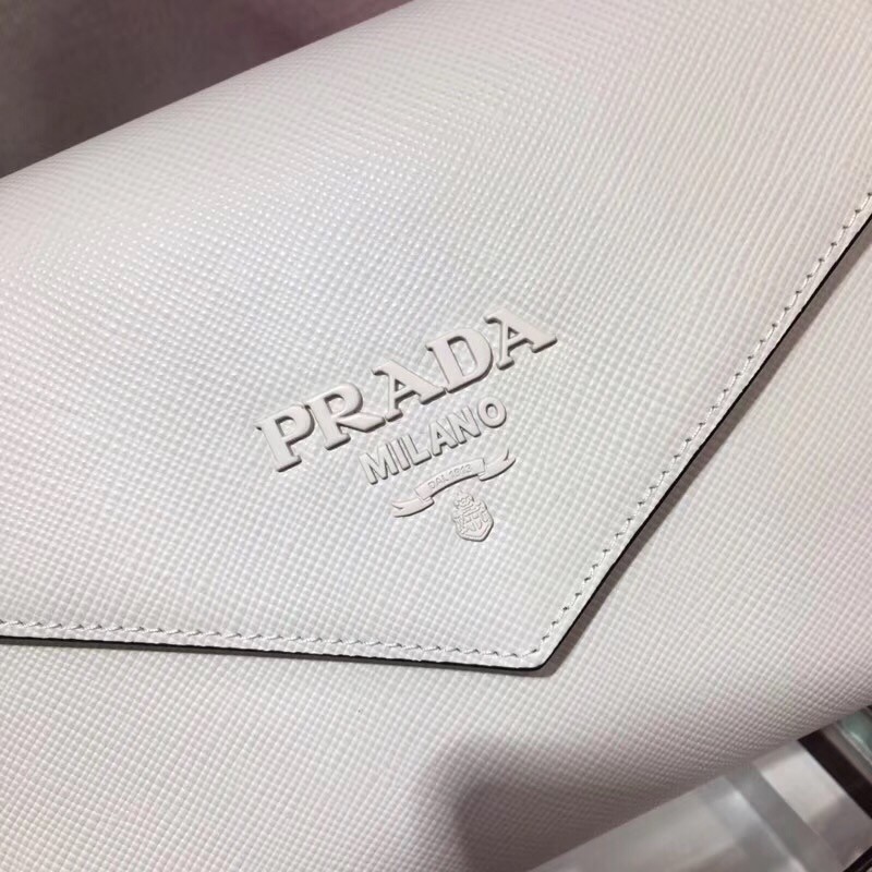 Prada Monochrome Top Handle Bag In White Saffiano Leather