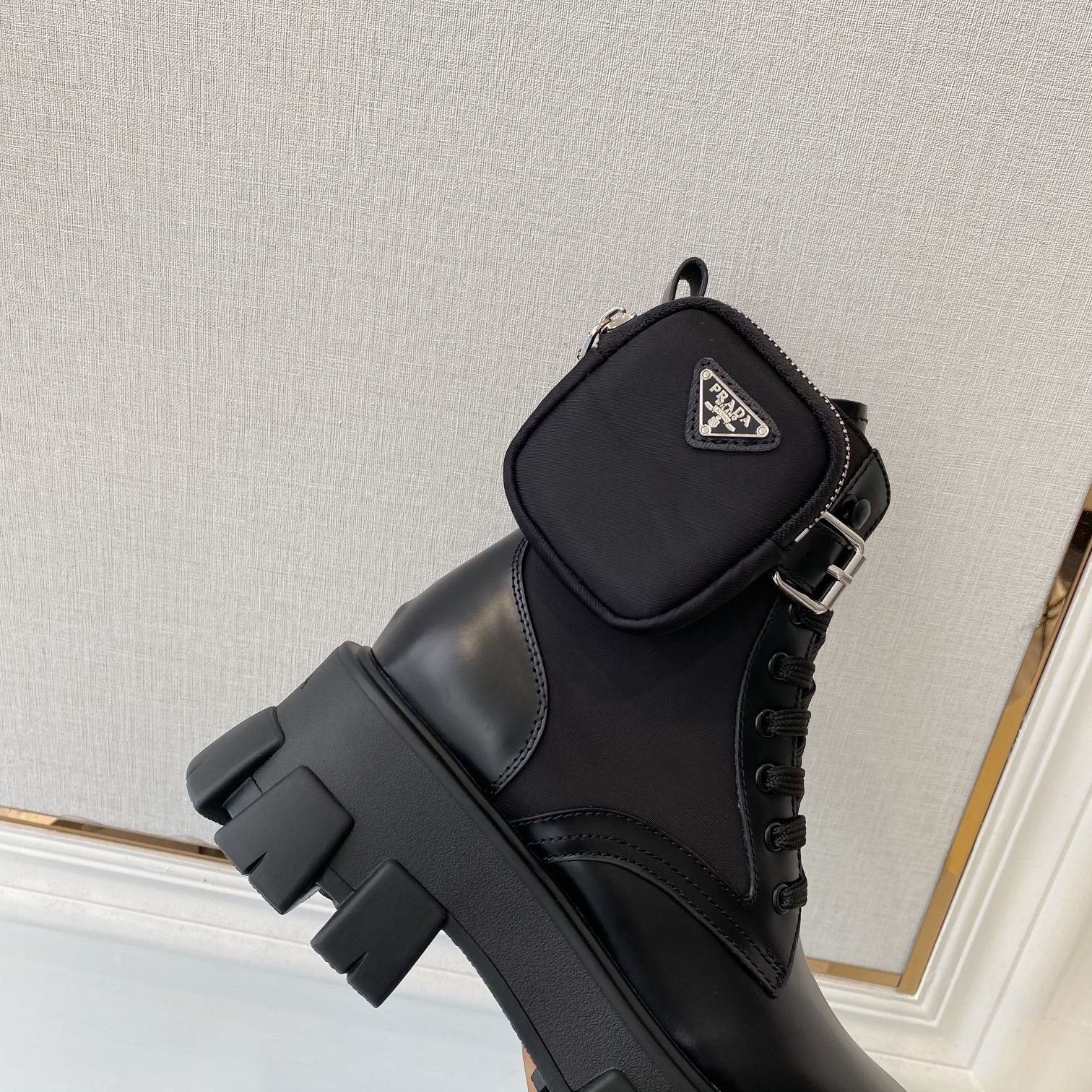 Prada Monolith Boots in Black Leather and Nylon Fabric