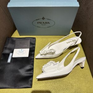 Prada Pumps 45mm in White Leather with Floral Appliques