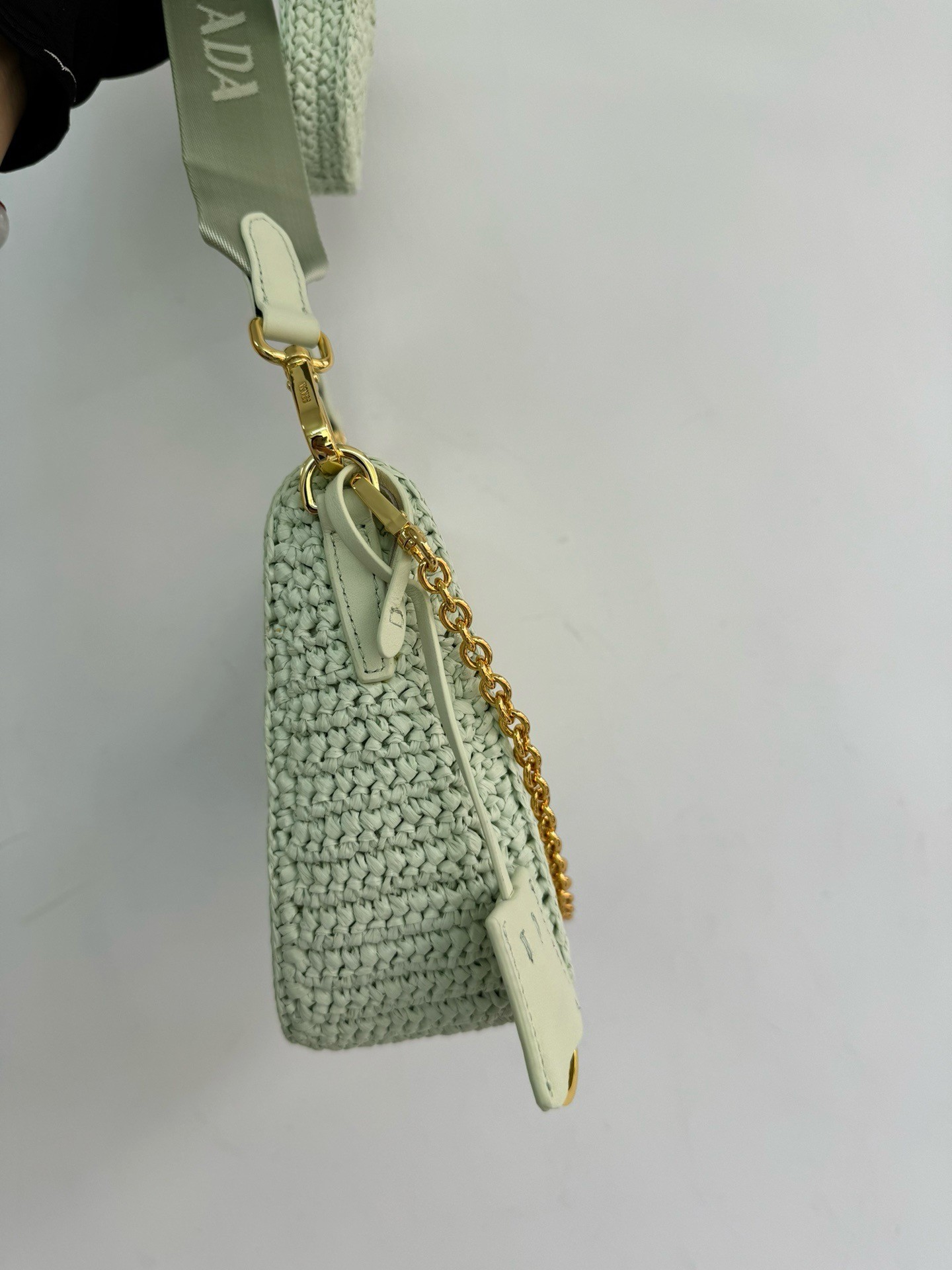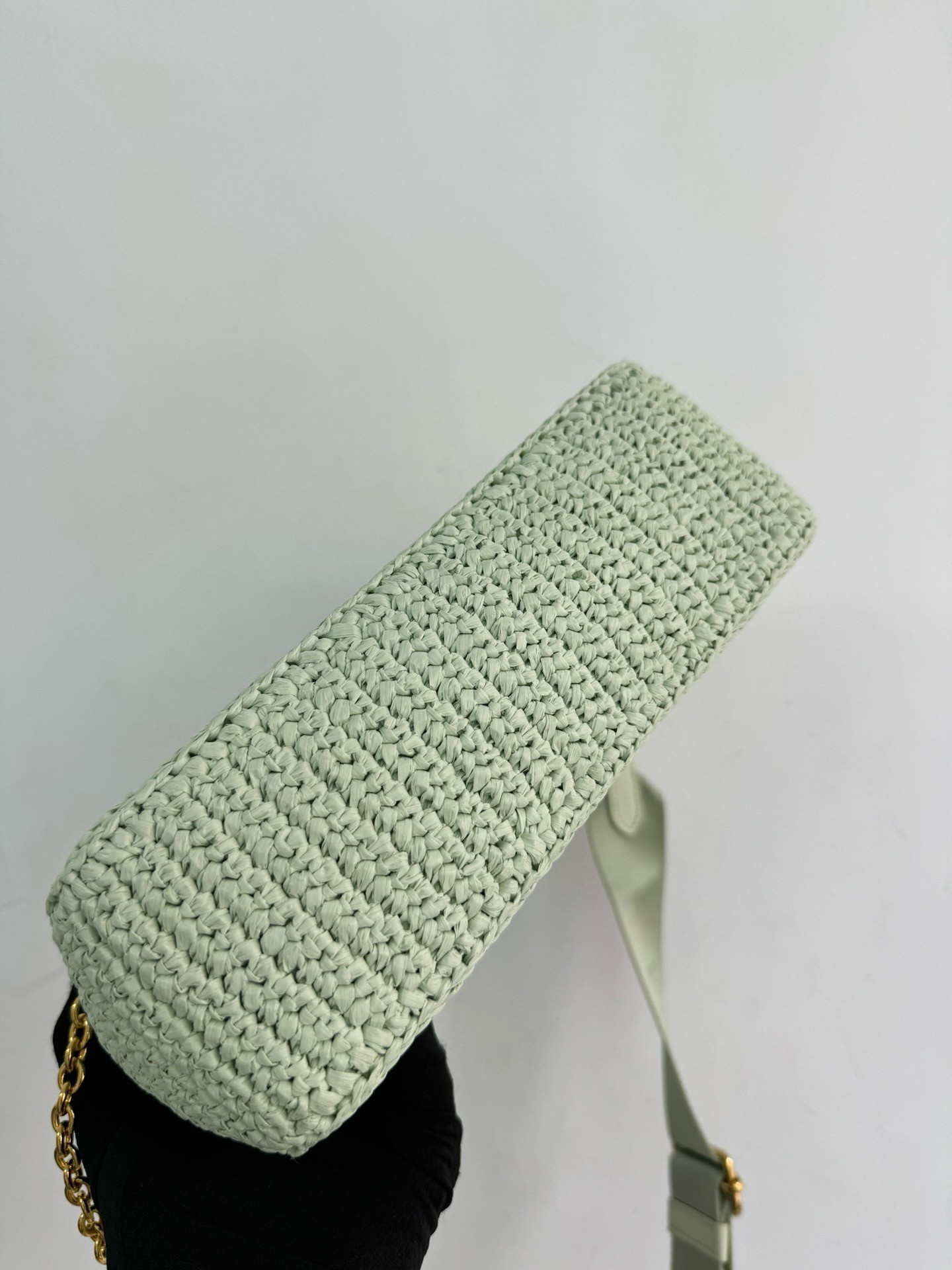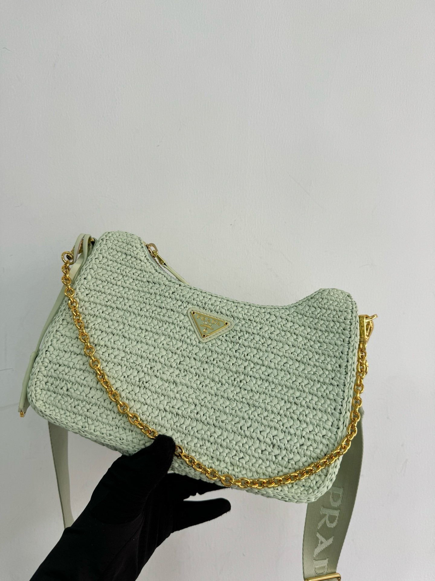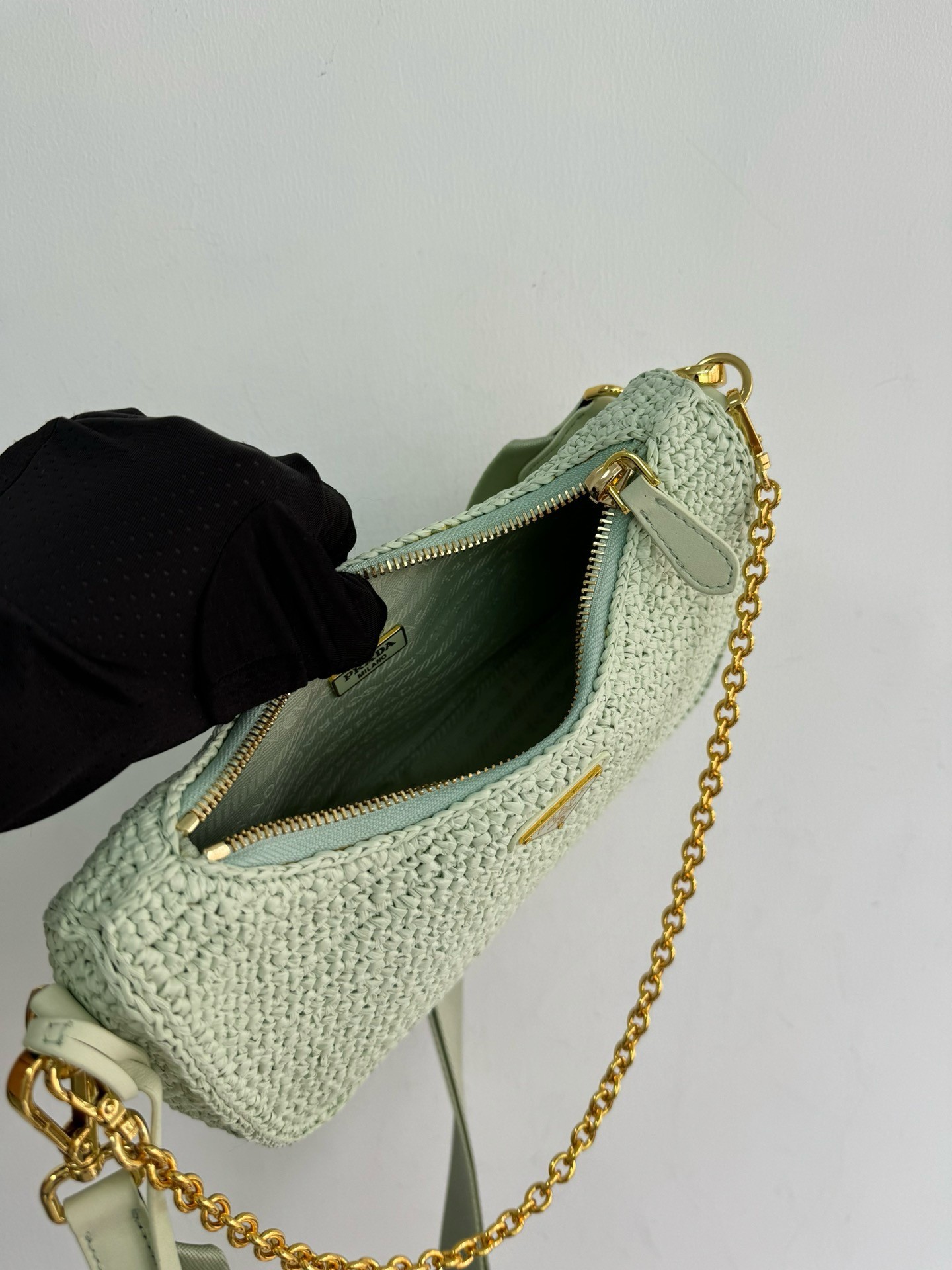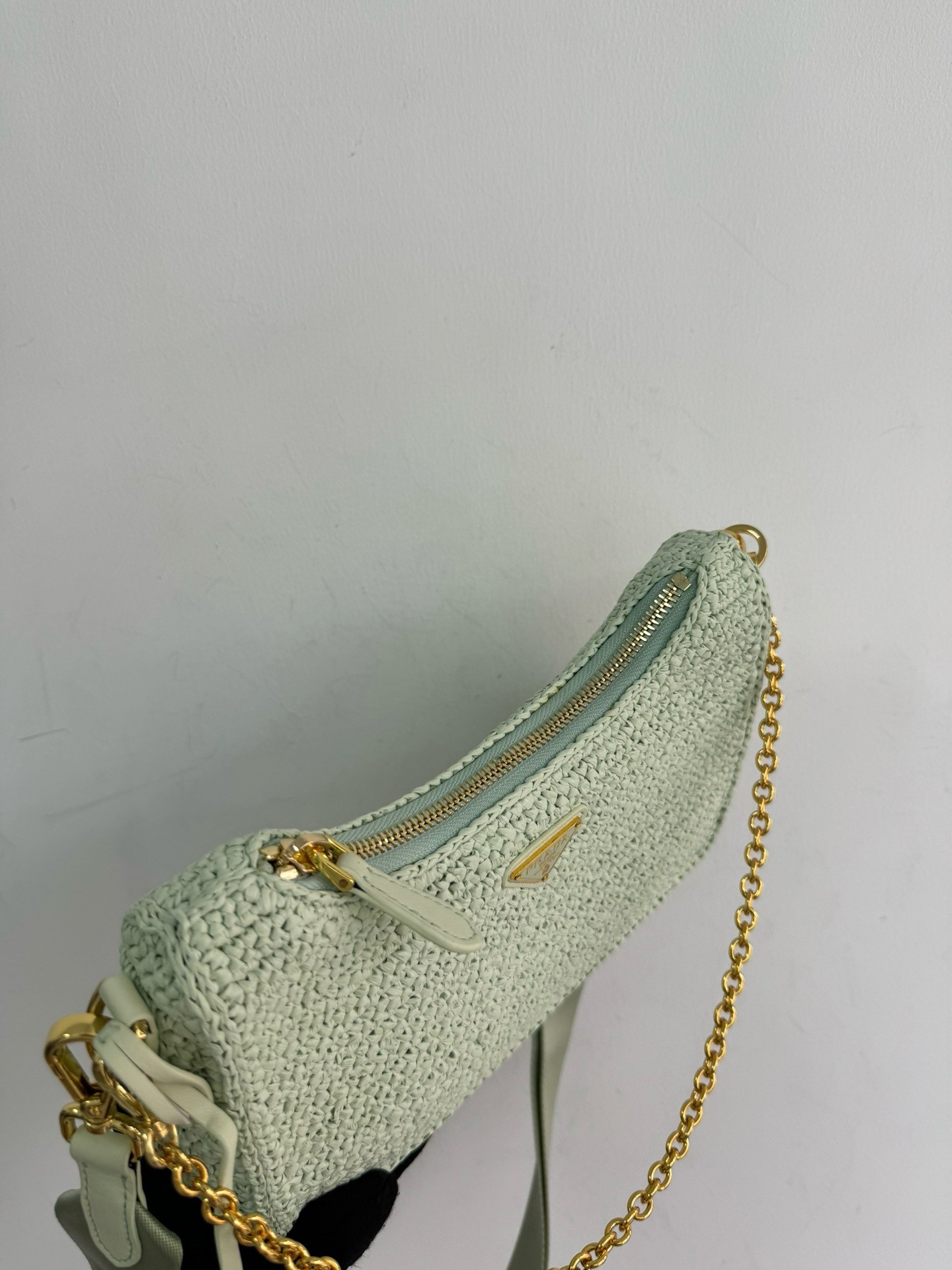 – Removable raffia zipper pouch and Re-Edition keychain