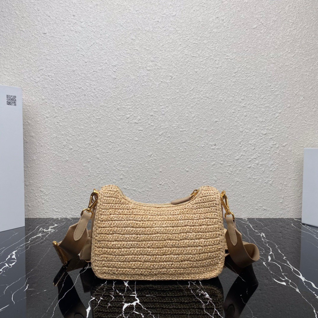 Prada Re-Edition 2005 Shoulder Bag In Beige Raffia