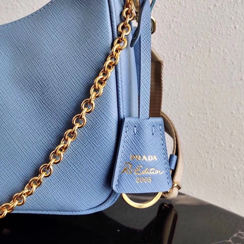 Prada Re-Edition 2005 Shoulder Bag In Blue Saffiano Leather