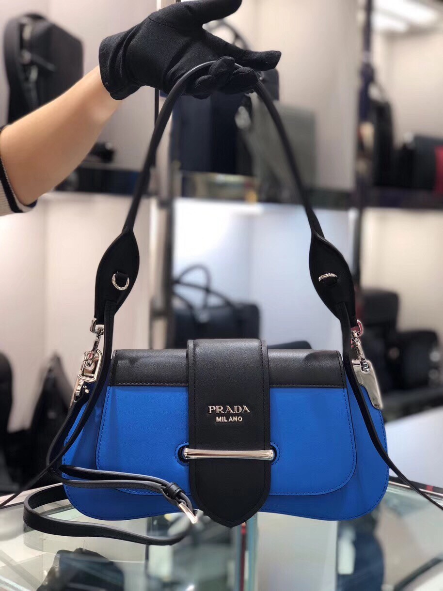 Prada Sidonie Shoulder Bag In Blue/Black Leather