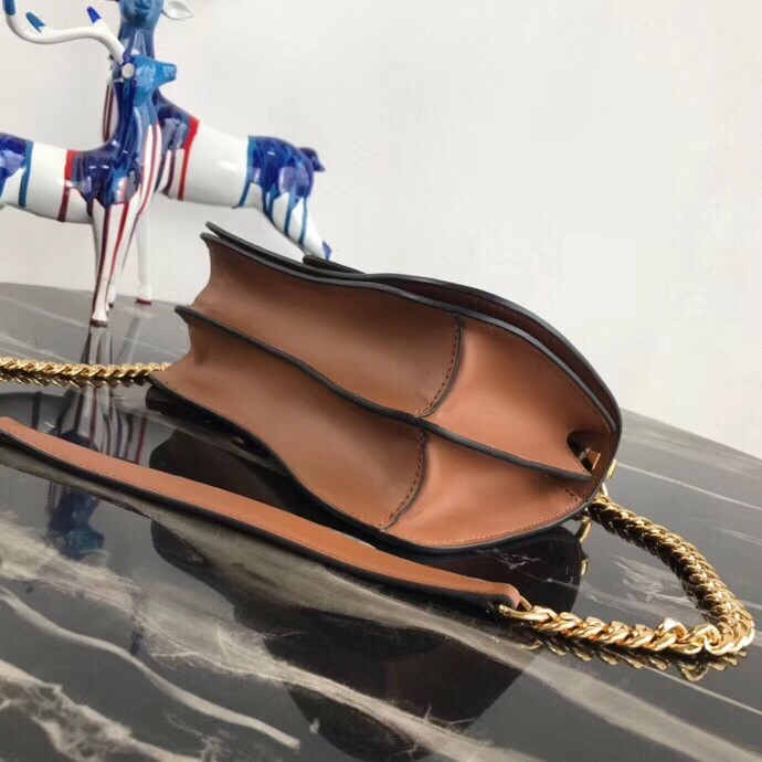 – Metal chain shoulder strap with leather shoulder pad