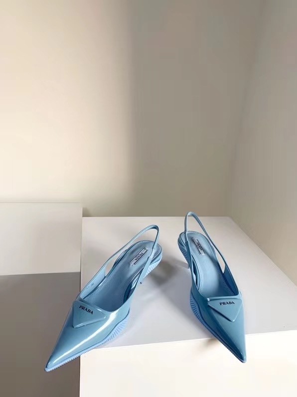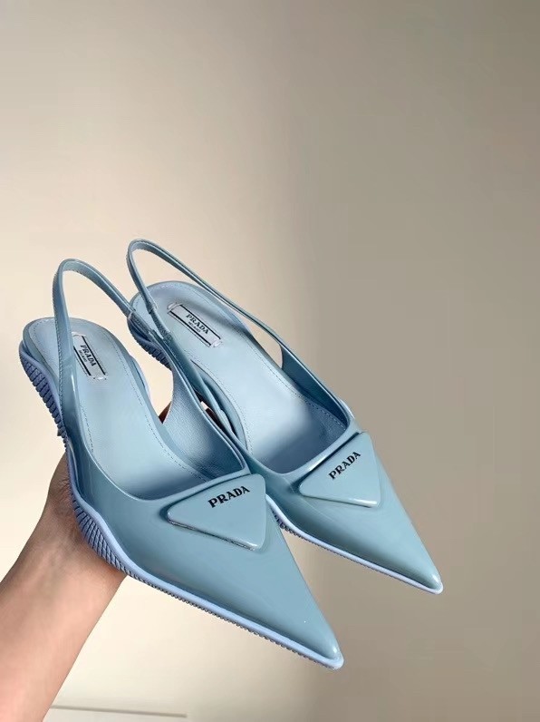 Prada Slingback Pumps In Light Blue Brushed Leather