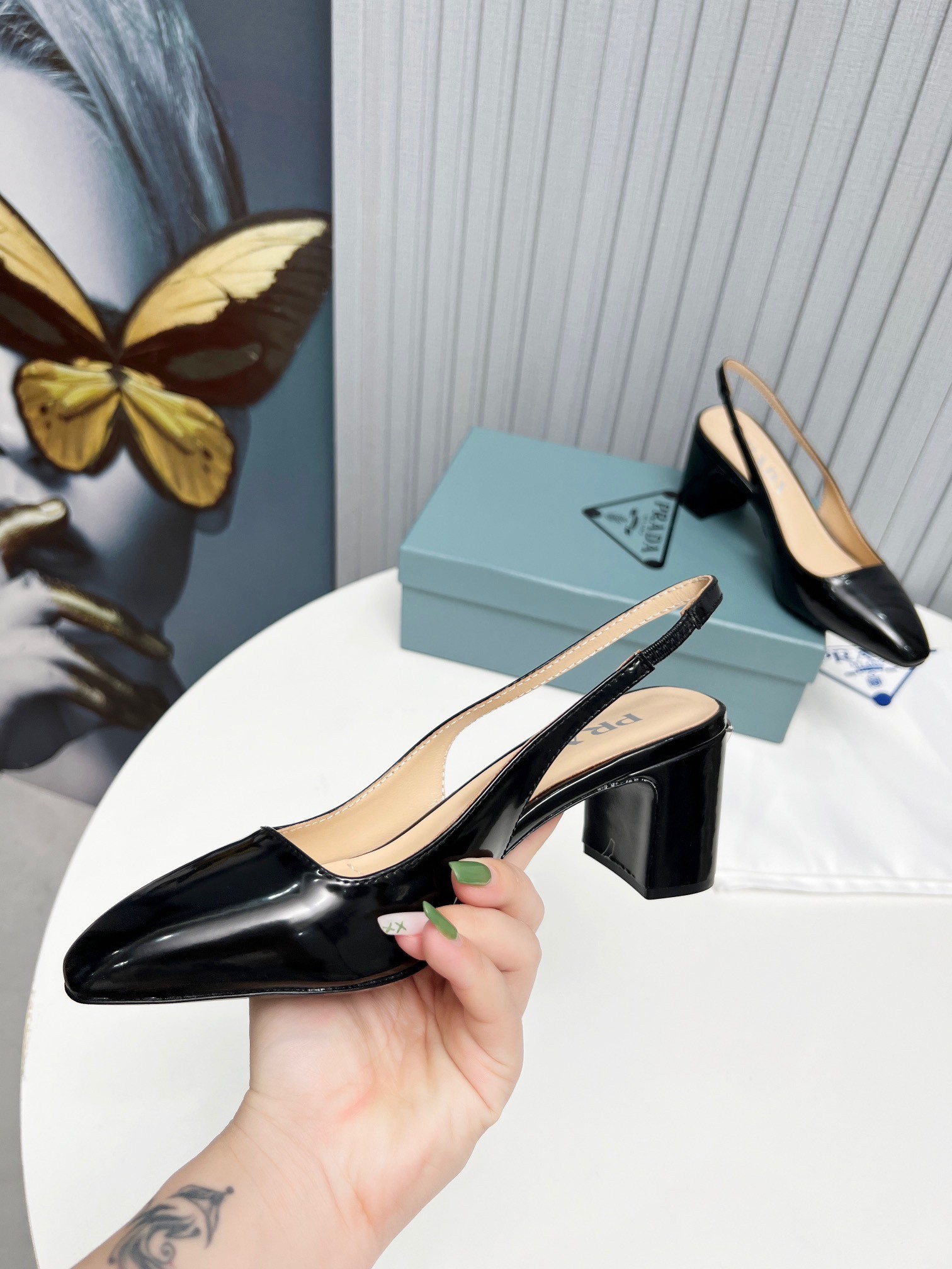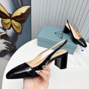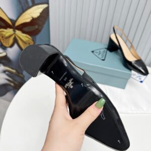 – Leather-covered heel with logo triangle