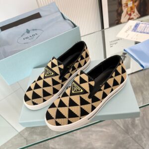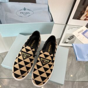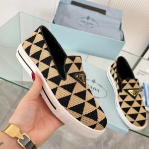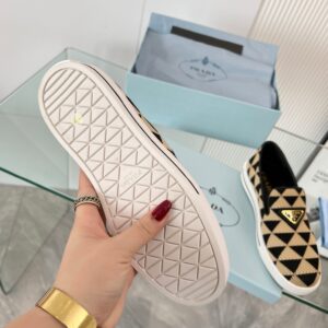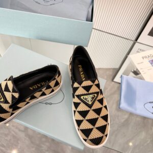Prada Slip-on Sneakers in Black/Beige Embroidered Fabric