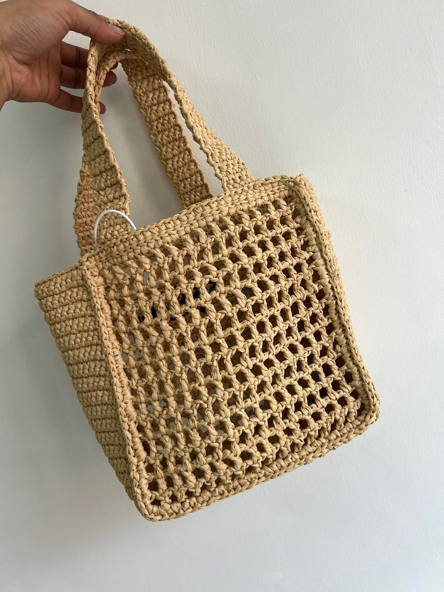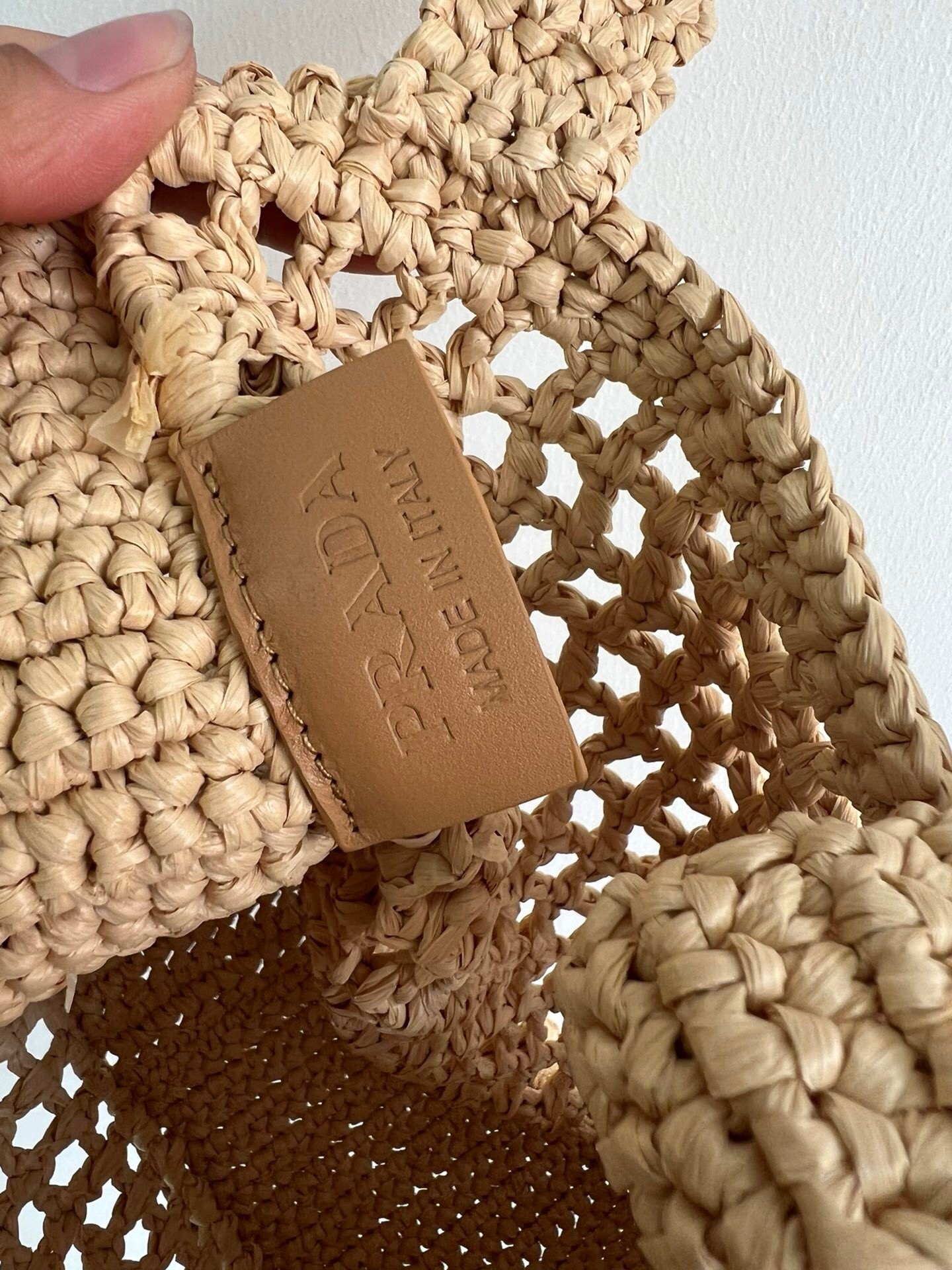 Prada Small Crochet Tote in Beige Raffia-effect Yarn