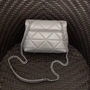 – Sliding tonal metal chain shoulder strap and leather shoulder pad
