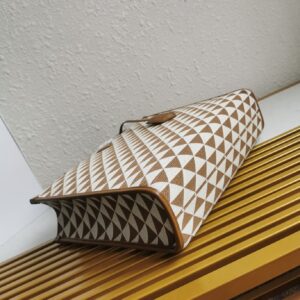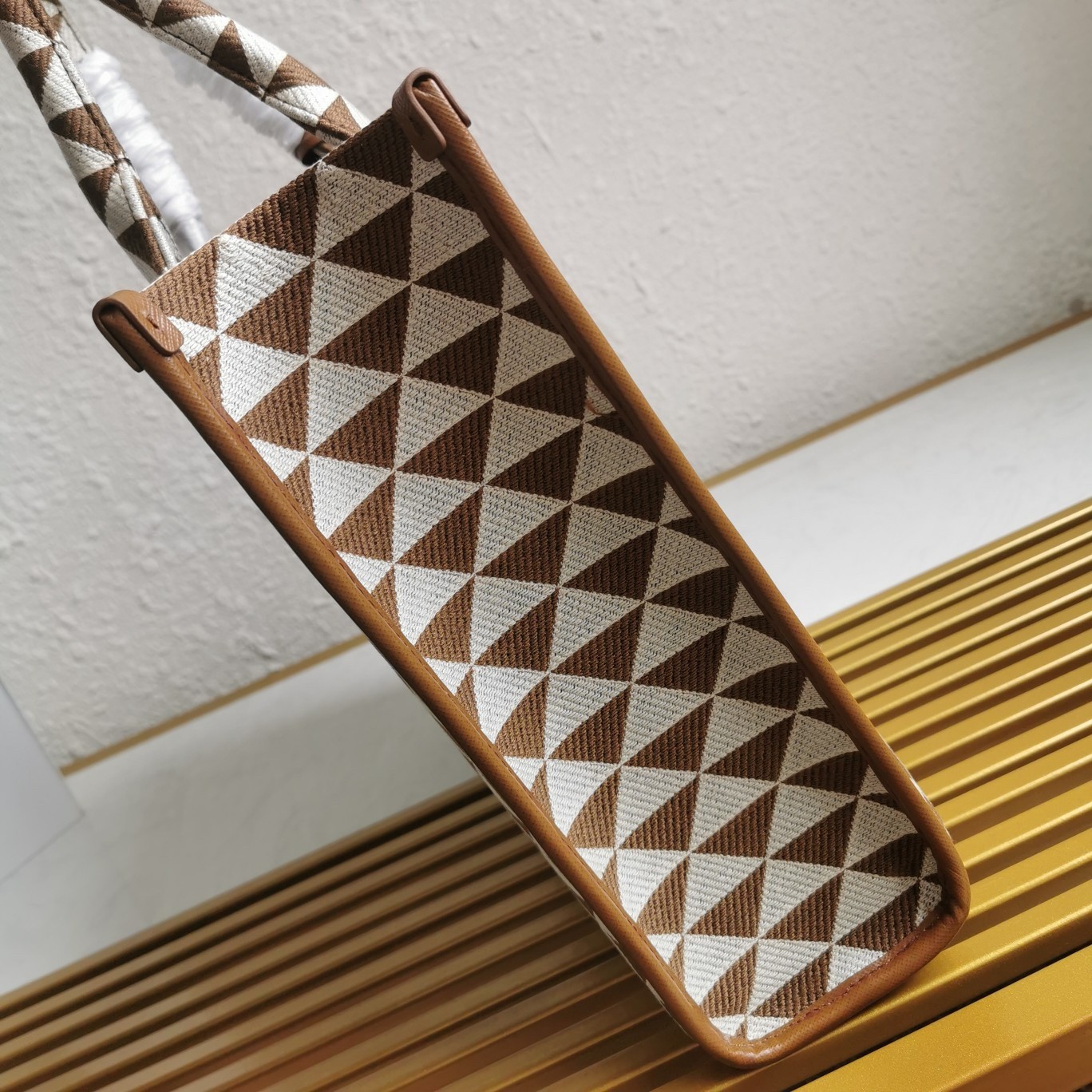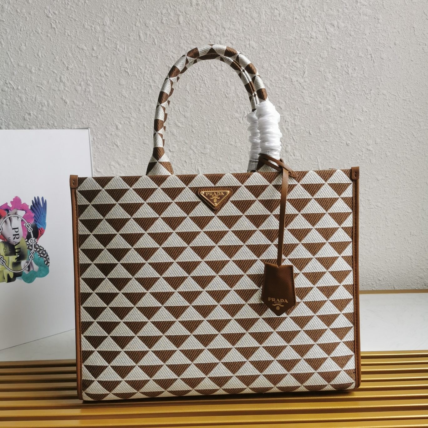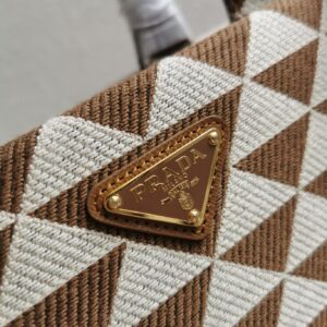 Prada Symbole Large Bag In White/Brown Jjacquard Fabric
