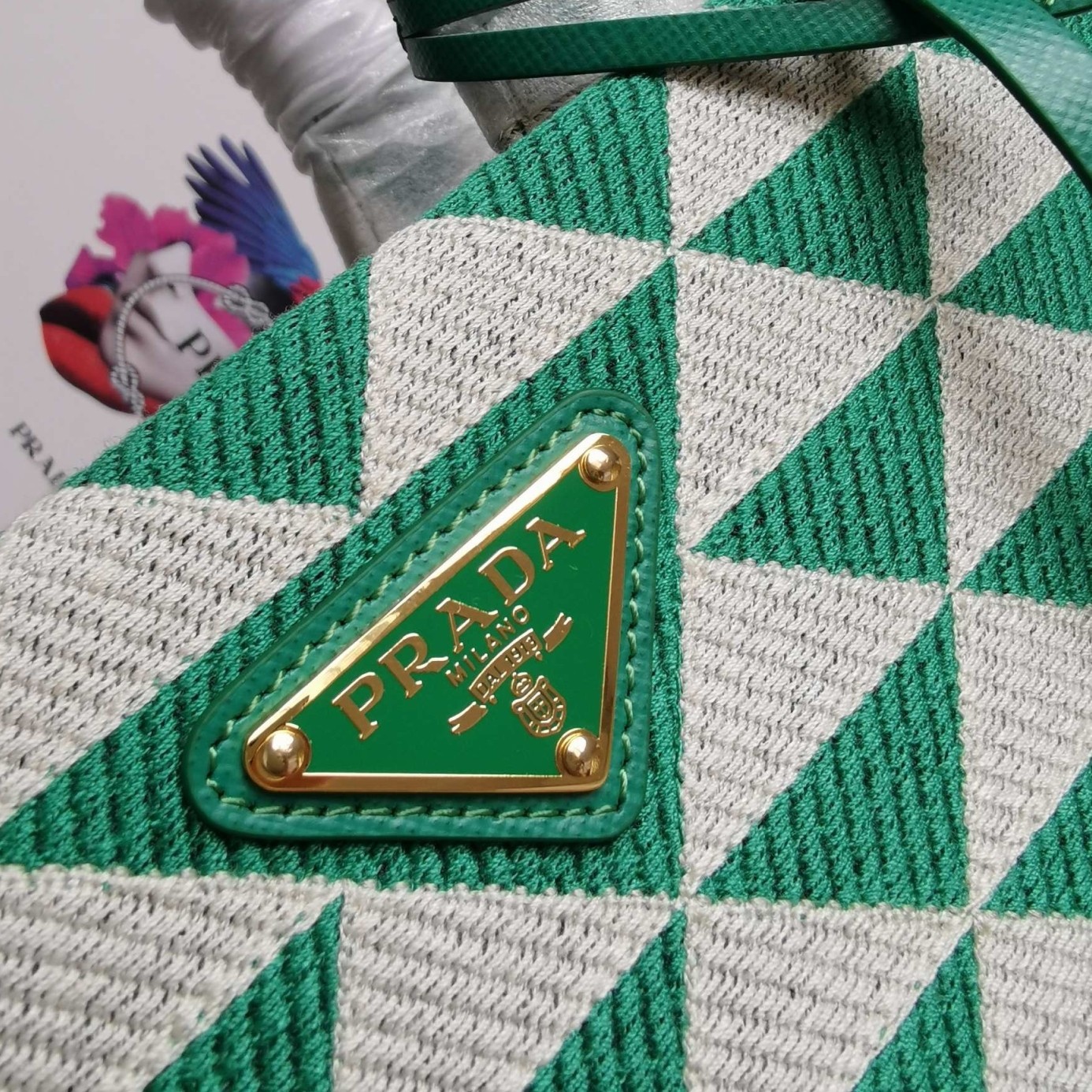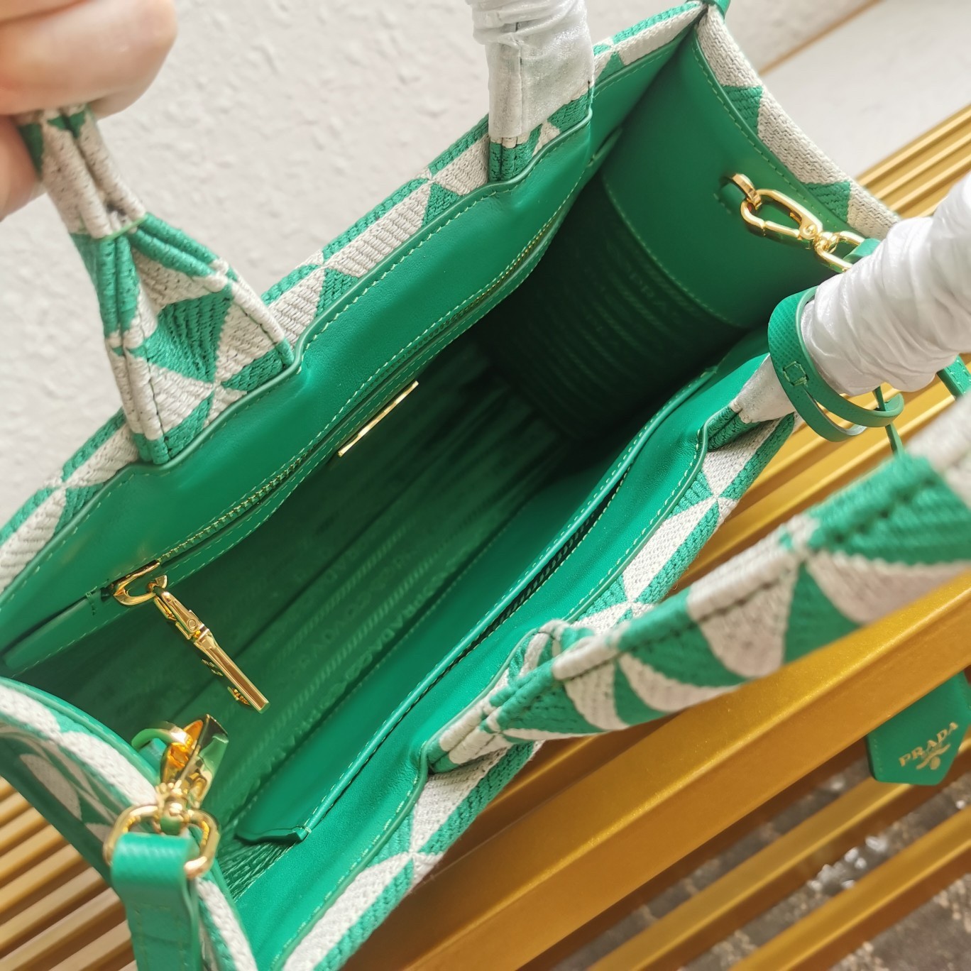 – Prada logo-print nylon lining with two pockets, one with zipper