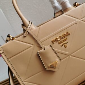 Prada Symbole Small Bag with Topstitching in Beige Leather