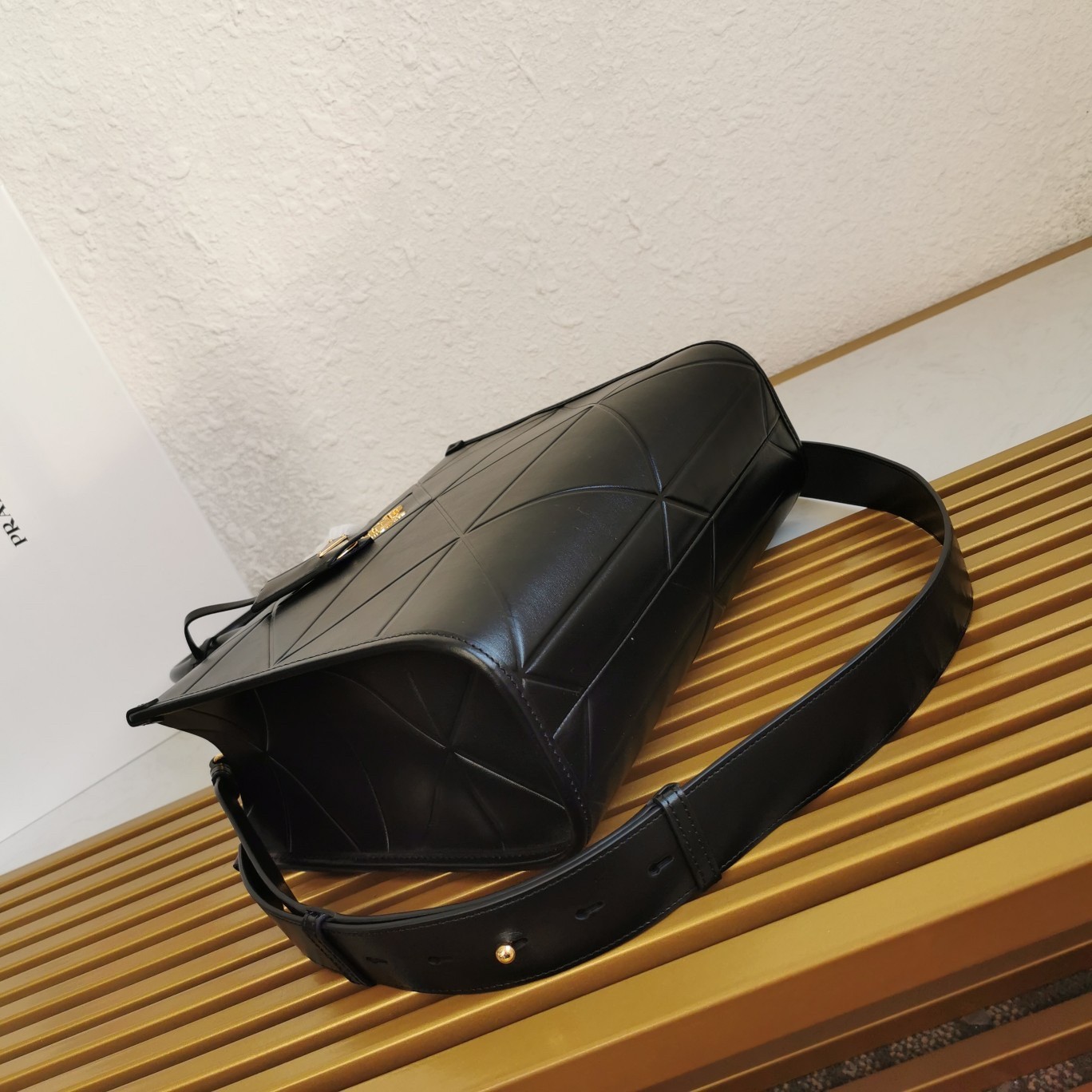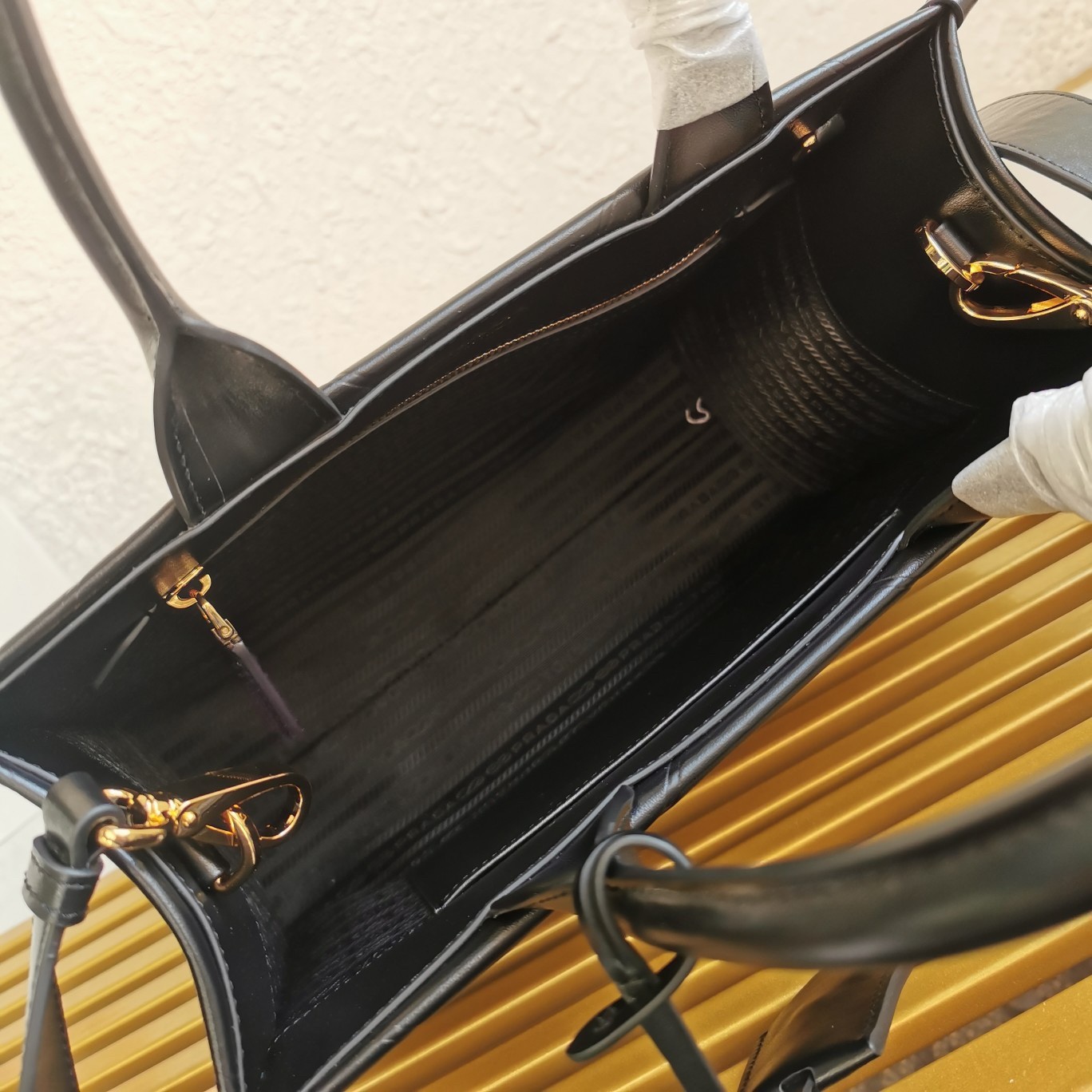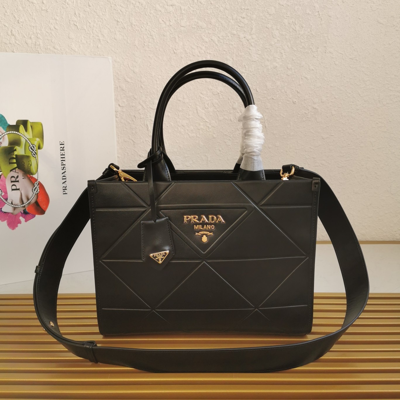 Prada Symbole Small Bag with Topstitching in Black Leather