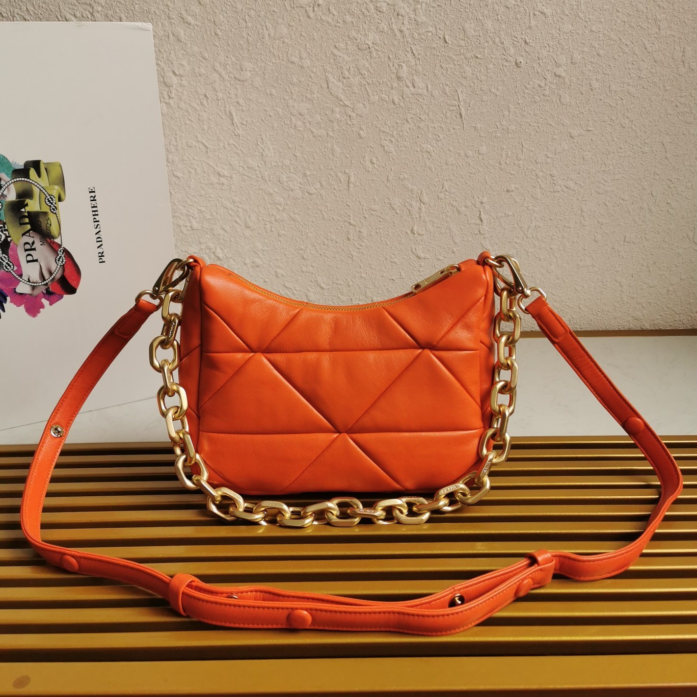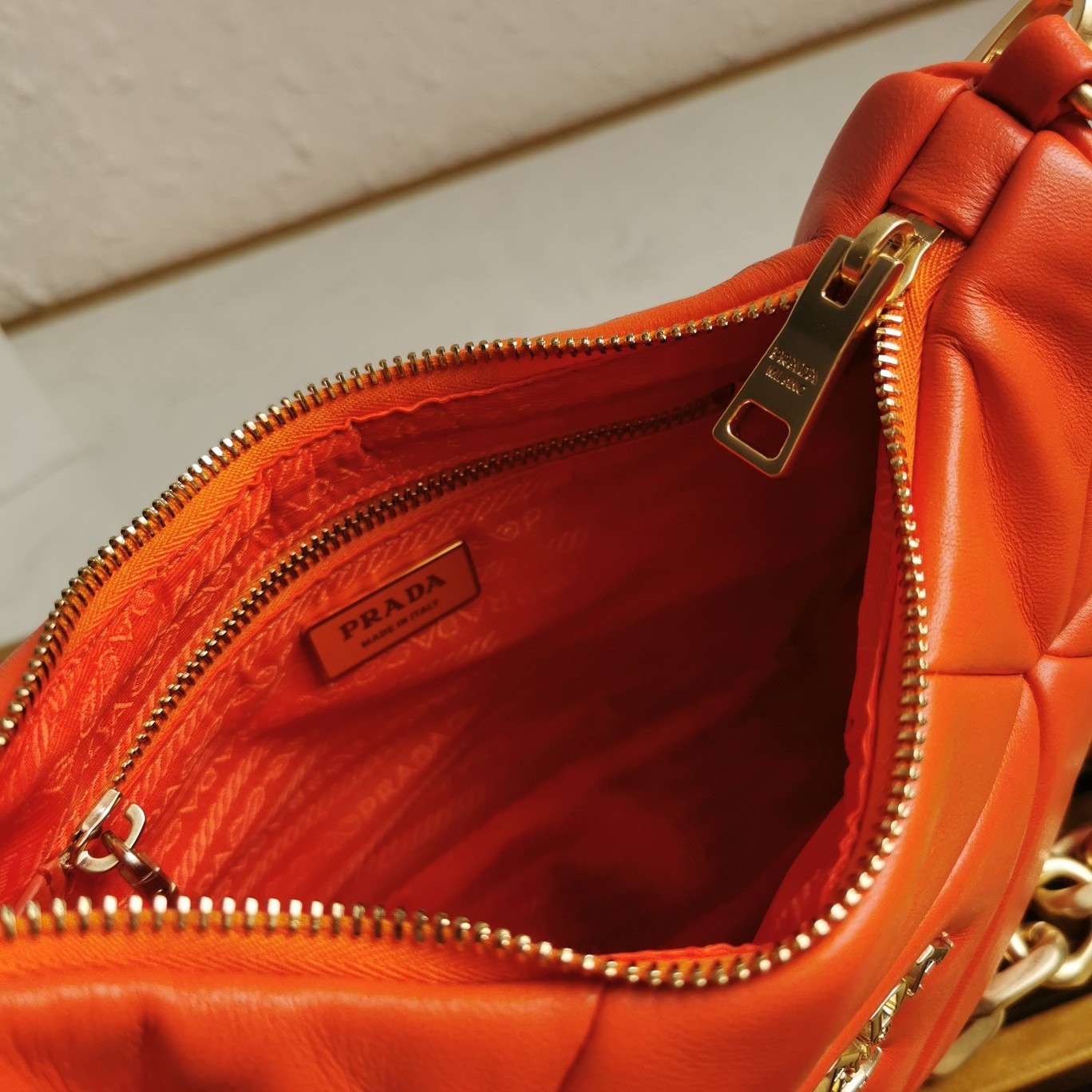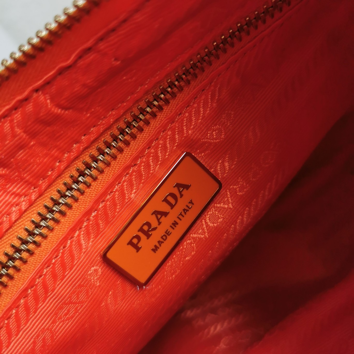 – Prada nylon logo lining with zipper pocket